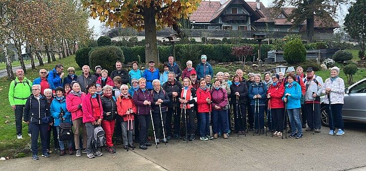 Die Überraschungswanderung Mitte Oktober mit 48 Teilnehmern führte nach Preding . Nach einer Rundwanderung gab es beim Heurigen Macher eine gute Jause .