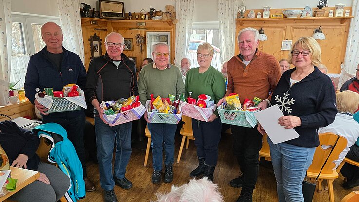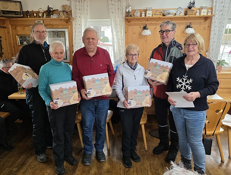 7 Teams aus den Ortsgruppen und das Bezirksvorstandsteam maßen ihr Geschick mit dem Eisstock.