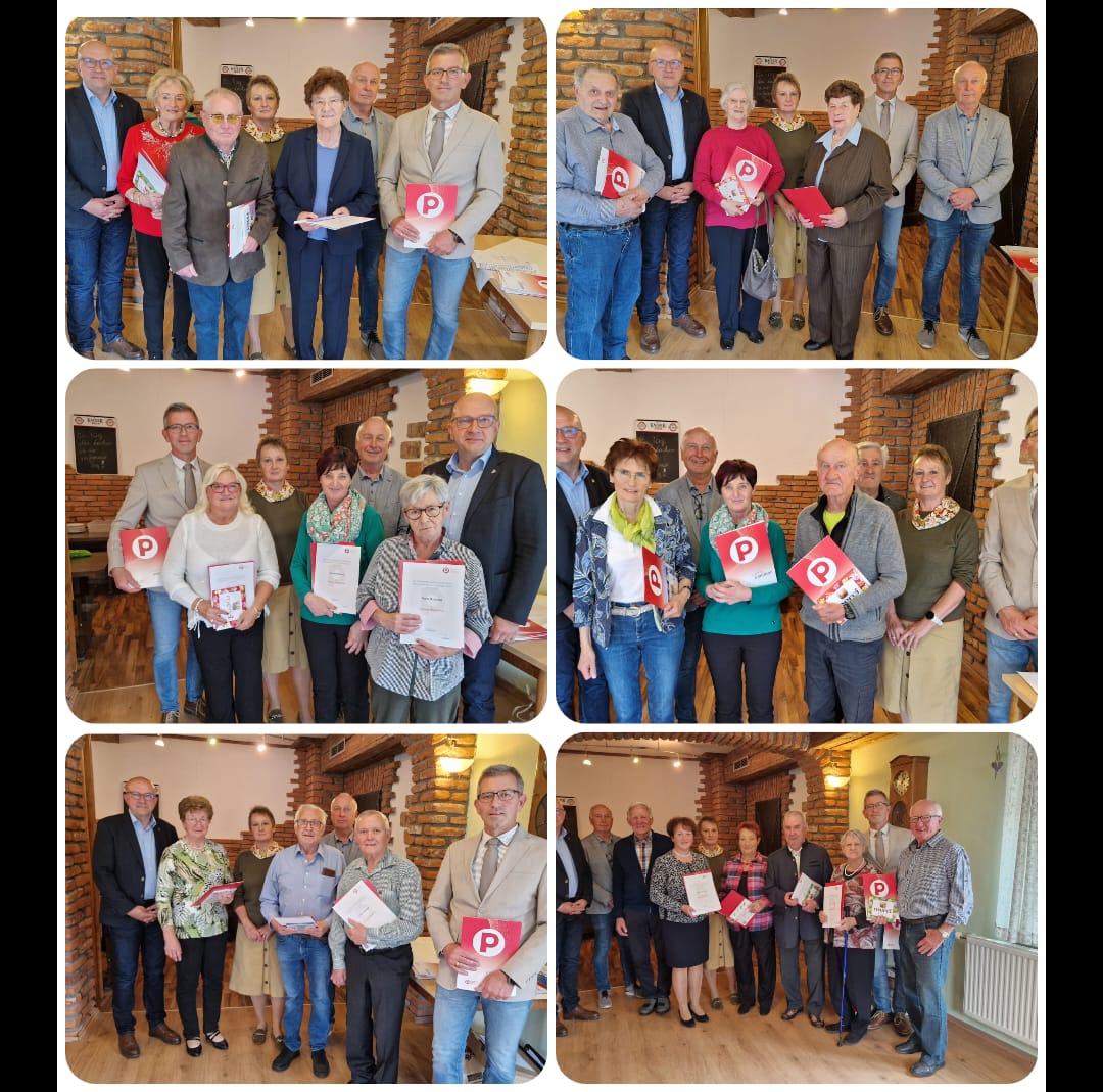 2025 stand wieder eine Mitgliederehrung mit 31 Mitgliedern und 4 Funktionären fest, mit 40 Mitgliedsjahren war Adelheid Unterweger am längsten beim Pensionistenverbad St. Marein-Feistritz. Es wurden auch Geschenke überreicht, Gedichte vorgetragen vom PV. Mitglied Schweiger Herta und Walter Moser begleitete diese Feier mit der Harmonika.