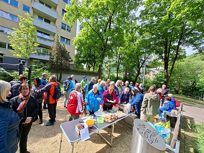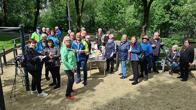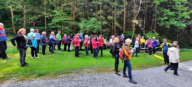 Zirka 120 wanderfreudige Mitglieder aus fast allen Ortsgruppen im Bezirk nahmen am 17. Mai an dem von der OG-Judendorf veranstalteten Wandertag bei kühlem Wetter teil. Der Bezirksvorsitzende Arno Maier und der OG-Vorsitzende Erich Winkler begrüßten die WanderInnen und wünschten einen unfallfreien Wandertag auf den beiden ausgeschriebenen Routen von ca. 4 km entlang der Mur und ca. 7 km über den Veitsberg.