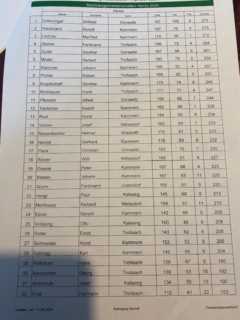 Am 11. April fanden die Bezirkskegelmeisterschaften des PVÖ Leoben statt!