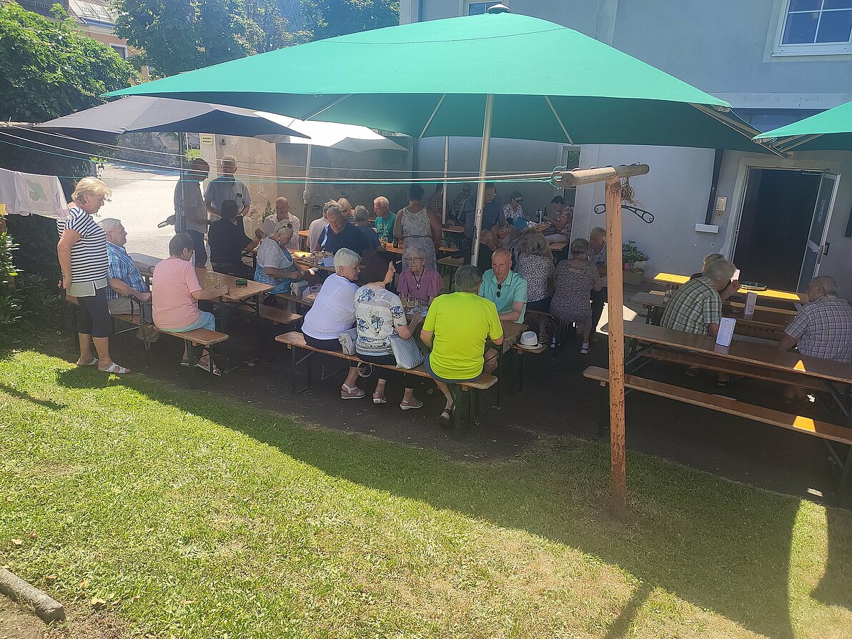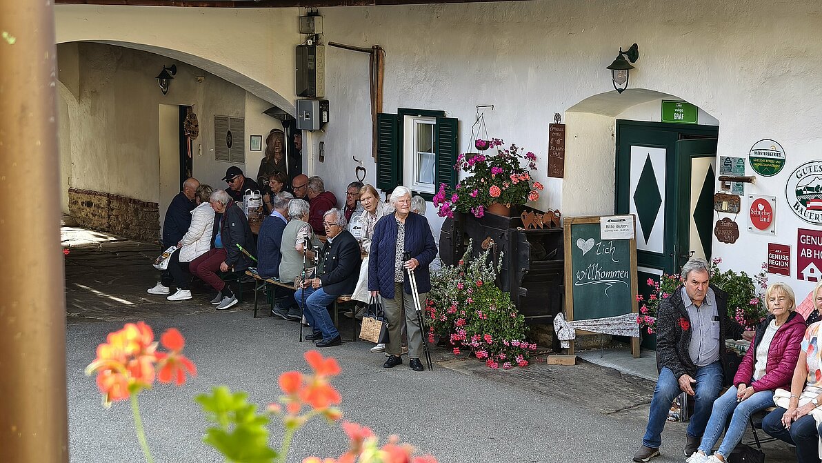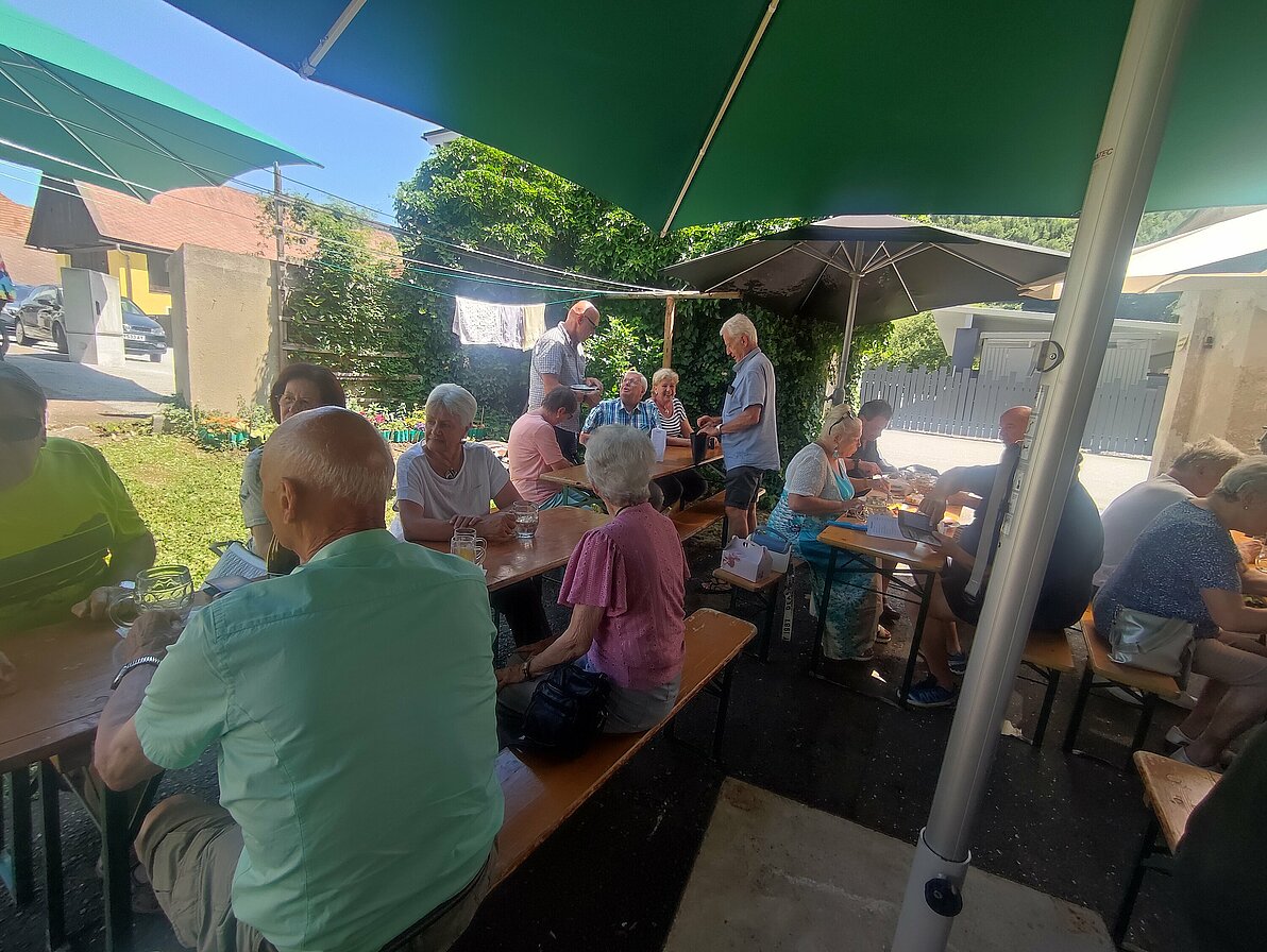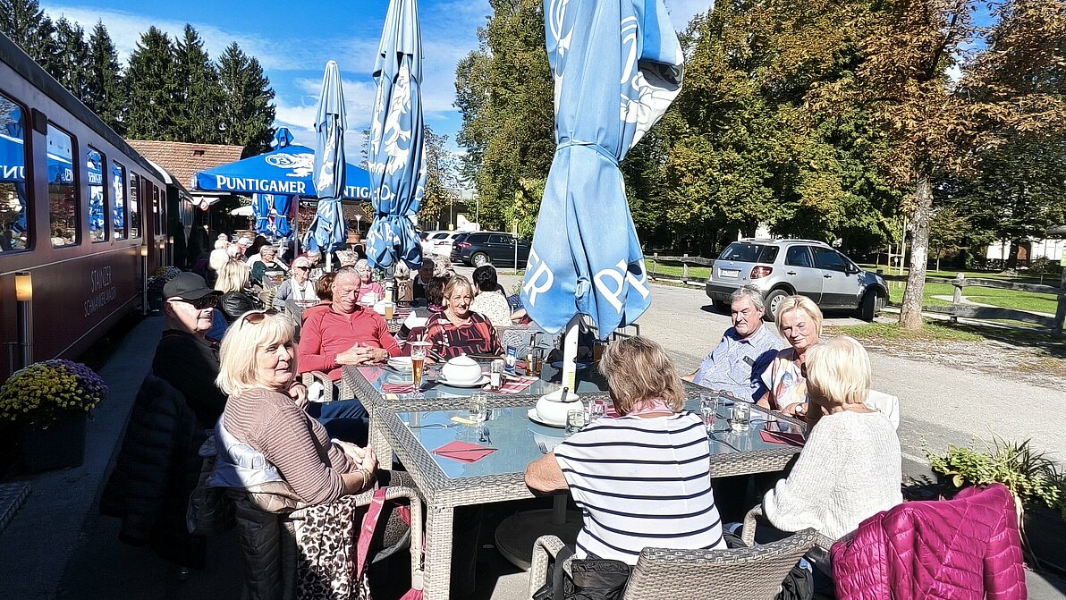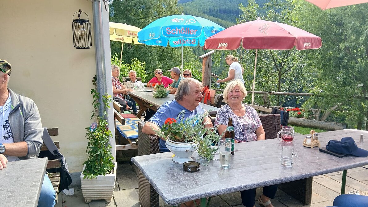 Gut gelaunt und bereits um einige neue Eindrücke reicher, machten wir uns im Anschluss auf den Weg zur nahegelegenen Bergschenke Gerersdorf, wo ein schmackhaftes Mittagessen auf uns wartete. Bei herrlichem Wetter, gemütlicher Atmosphäre und musikalischer Unterhaltung klang der Nachmittag stimmungsvoll aus. Einige ließen es sich nicht nehmen, bei der schwungvollen Musik ein Tänzchen aufs Parkett zu legen und so für heitere Momente zu sorgen.