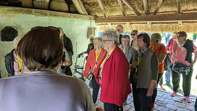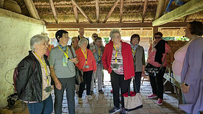 Nach einer angenehmen Busfahrt von etwa eineinhalb Stunden erreichten wir unser erstes Ziel. Dort erwartete uns eine spannende Führung durch das Museumsgelände, das aus insgesamt 35 liebevoll erhaltenen Objekten besteht. Die meisten dieser historischen Gebäude – alte Wohn- und Wirtschaftsgebäude mit charakteristischen Stroh- oder Schindeldächern – vermitteln eindrucksvoll den Charme vergangener Zeiten. In ihrem Inneren finden sich zahlreiche authentische Alltagsgegenstände und bäuerliche Werkzeuge, die einen faszinierenden Einblick in die pannonische Kultur und das Landleben der letzten drei Jahrhunderte geben.