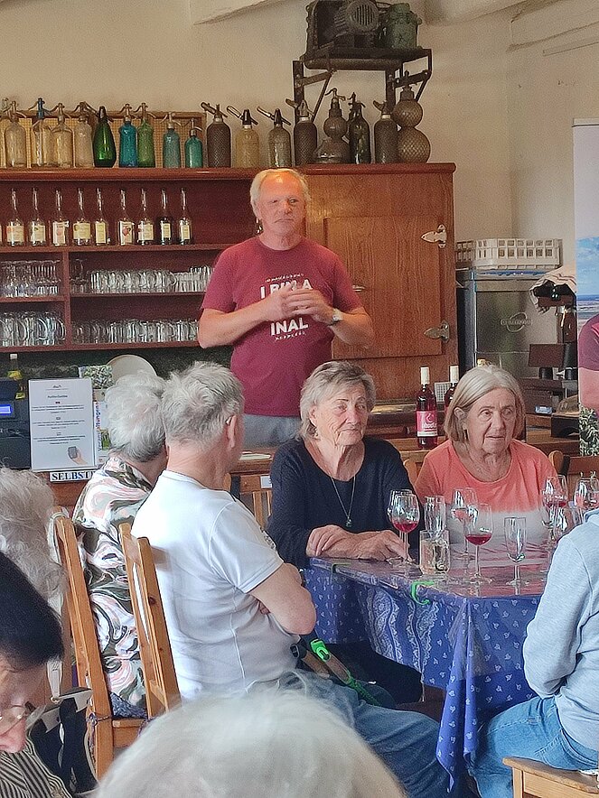 Nach dieser eindrucksvollen und lehrreichen Zeitreise durften wir uns auf ein weiteres Highlight freuen: eine genussvolle Weinverkostung, bei der wir den typischen Wein der Region, den berühmten Uhudler, kennenlernen durften. Ein lokaler Winzer führte uns mit viel Engagement und Fachwissen durch die Geschichte und Besonderheiten dieser besonderen Rebsorte. Mit großem Interesse lauschten wir seinen Erklärungen, während wir verschiedene köstliche Weine und Frizzante-Variationen probieren durften.
