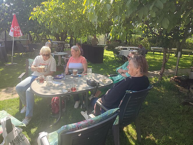 Wie bei unseren Treffen üblich, mischten sich die Anwesenden in wechselnden Gesprächsgruppen und unterhielten sich angeregt über die unterschiedlichsten Themen – von aktuellen Ereignissen bis zu persönlichen Erlebnissen. Die angenehme Stimmung, das gute Essen und das freundliche Service trugen dazu bei, dass sich alle rundum wohlfühlten und diesen Nachmittag in vollen Zügen genossen.