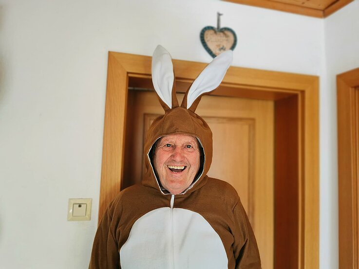 Die Überraschung war groß, als unser Ortsvorsitzender als Osterhase den Saal betrat und alle Pensionisten mit 2 roten Eiern beschenkt wurden.