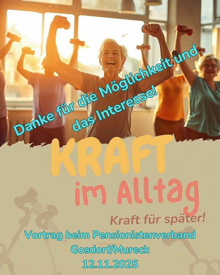 Herr Vogrinec machte uns in seinem unterhaltsamen, kurzweiligen und interessanten Vortrag mit kleinen praktischen Übungen für jeden Ort und jede Zeit wieder bewusst, wie wichtig Bewegung und auch Kraft für ein zufriedenes Leben im Alter sind.