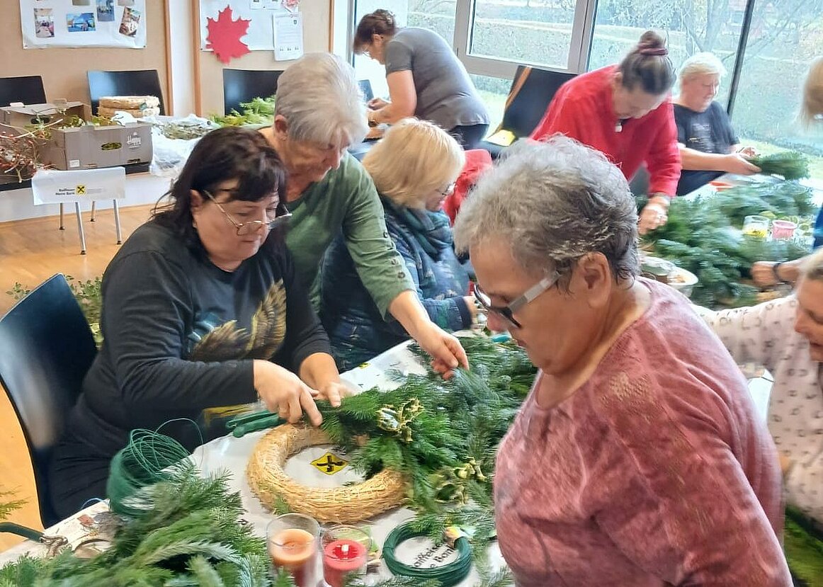 Der Wunsch, einmal gemeinsam etwas zu basteln, wurde schon öfter bei unseren Clubnachmittagen geäußert. So beschlossen wir, heuer einmal selbst Adventkränze zu binden. Gesagt, getan. Einige Mitglieder meldeten sich sofort und so wurde am 19. November eifrig gebunden und geschmückt. Es machte sehr viel Spaß und es war ein perfekter gemeinsamer Nachmittag. Die Ergebnisse können sich auch durchaus sehen lassen. Wir sind sehr stolz auf uns und freuen uns schon auf die nächste gemeinsame Aktivität. Auch im nächsten Jahr wollen wir wieder Kränze binden.