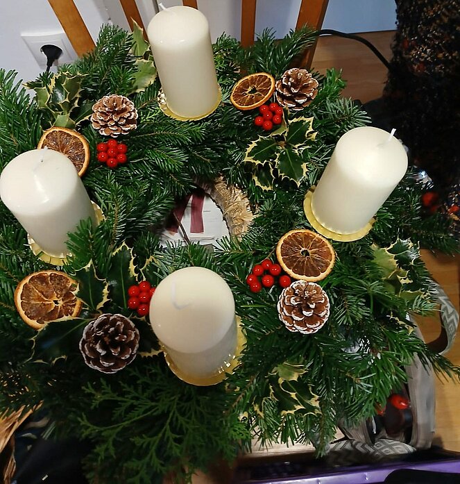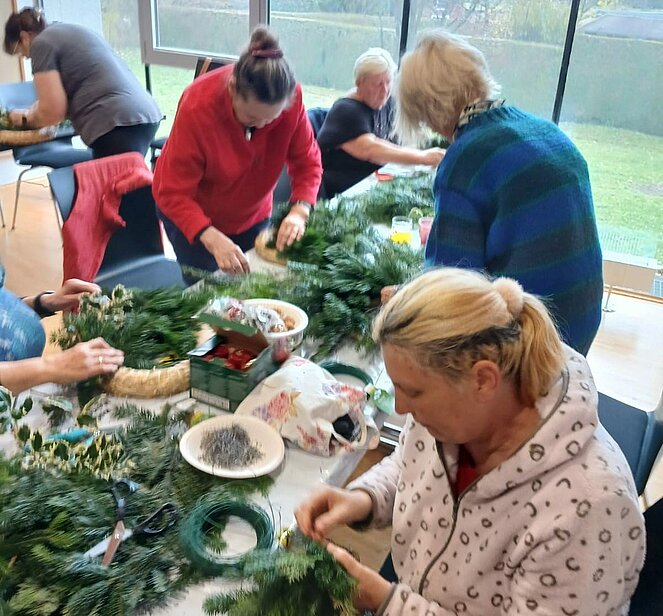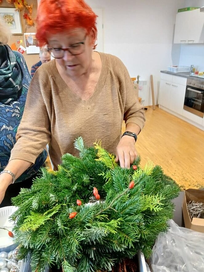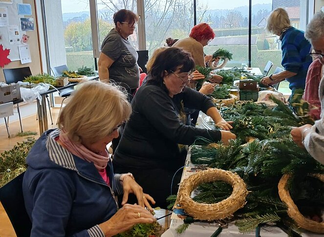 Der Wunsch, einmal gemeinsam etwas zu basteln, wurde schon öfter bei unseren Clubnachmittagen geäußert. So beschlossen wir, heuer einmal selbst Adventkränze zu binden. Gesagt, getan. Einige Mitglieder meldeten sich sofort und so wurde am 19. November eifrig gebunden und geschmückt. Es machte sehr viel Spaß und es war ein perfekter gemeinsamer Nachmittag. Die Ergebnisse können sich auch durchaus sehen lassen. Wir sind sehr stolz auf uns und freuen uns schon auf die nächste gemeinsame Aktivität. Auch im nächsten Jahr wollen wir wieder Kränze binden.