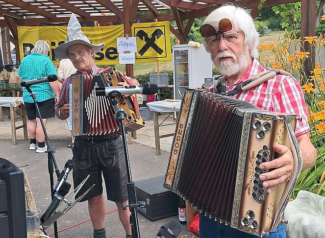 Bezirksvorsitzende Justina Bauer begrüßte alle Teilnehmer und wurde dabei durch unser Duo Gerhard und Leo musikalisch unterstützt.