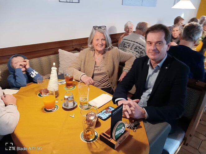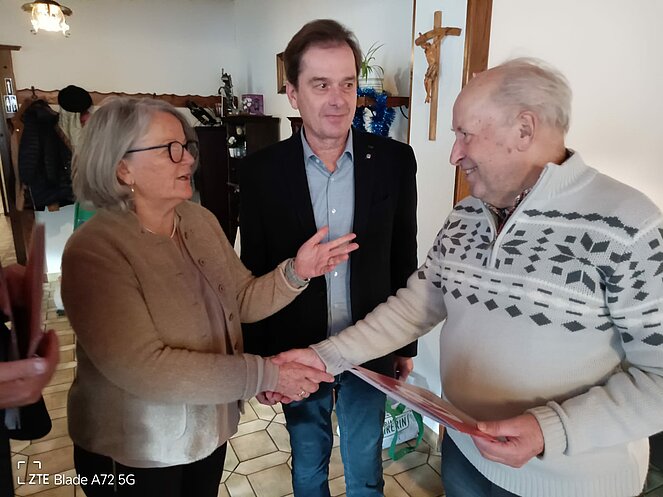 Bei der Ehrung erhielt Ortsvors. Hannes Mayer tatkräftige Unterstützung von Bgm. Bernhard Moser und unserer Bezirksvorsitzenden, Lisi Well. Nach dem offiziellen Teil gab es noch Gelegenheiten für das eine oder andere gemütliche Tratscherl.