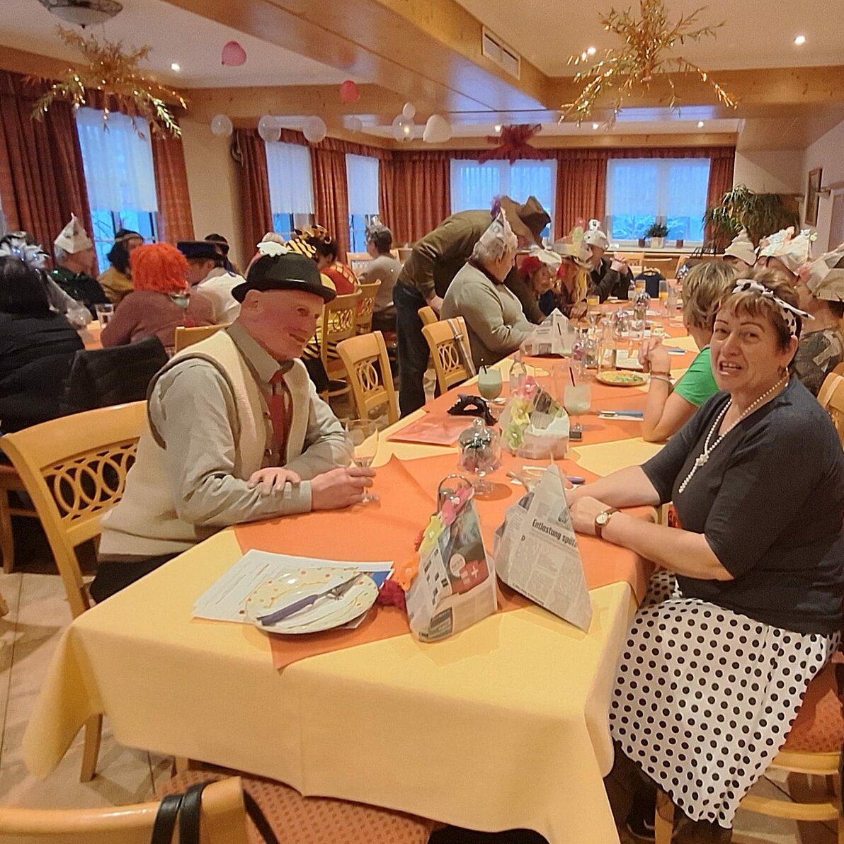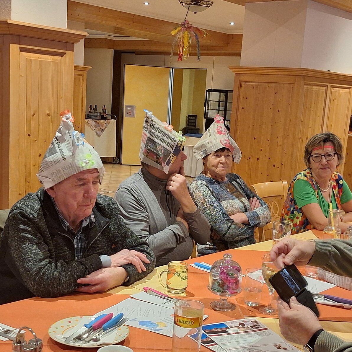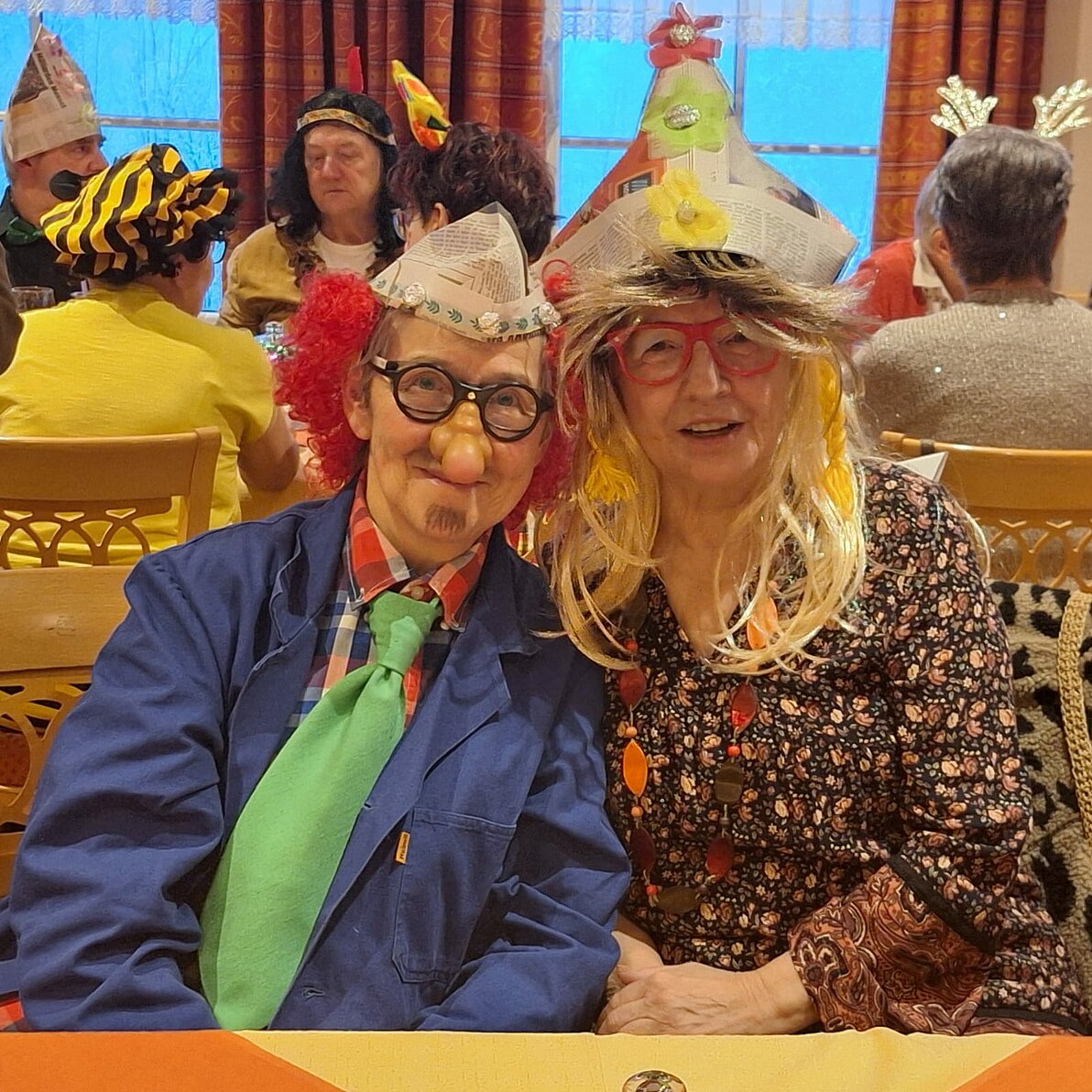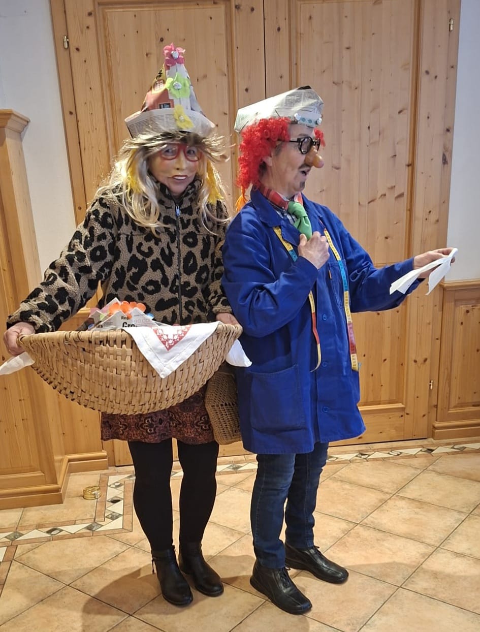 Gut ausgestattet brachten Meister Maria und Lehrling Poldi kreative handgefertigte, kreativ gestaltete Hüte mit – und so entstand schnell eine bunte, fantasievolle Faschingsrunde, bei der viel gelacht und getanzt wurde.