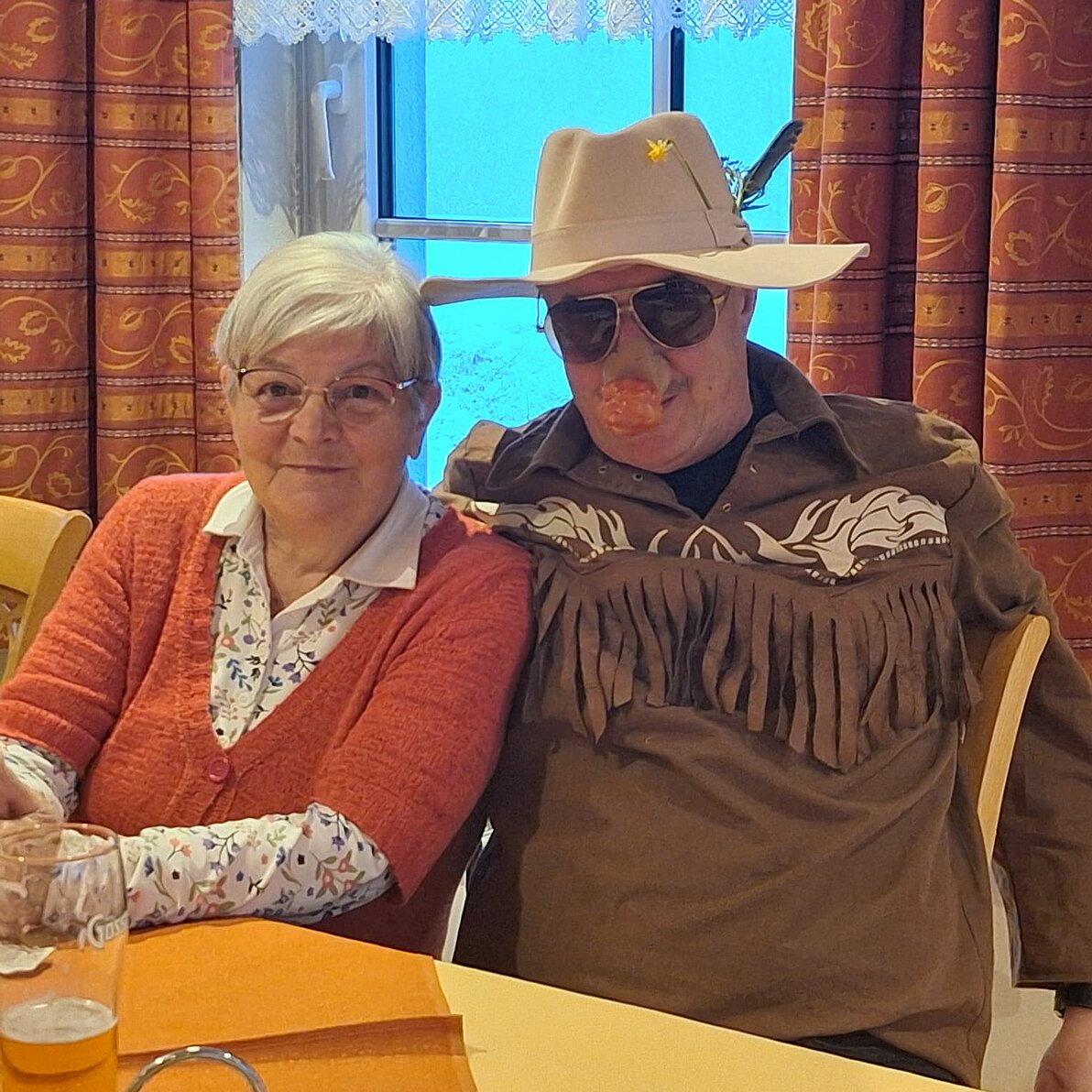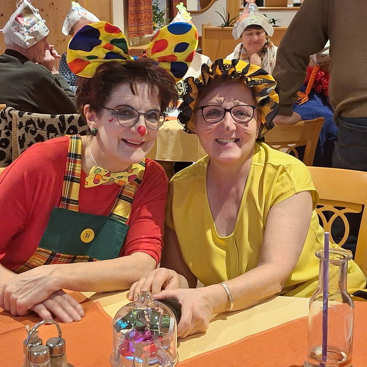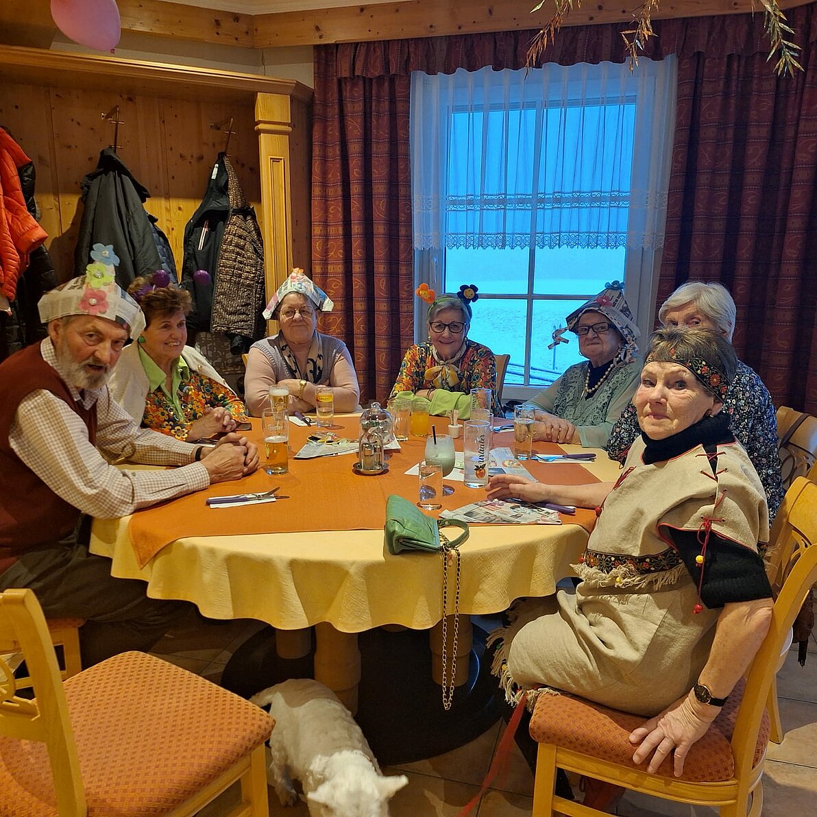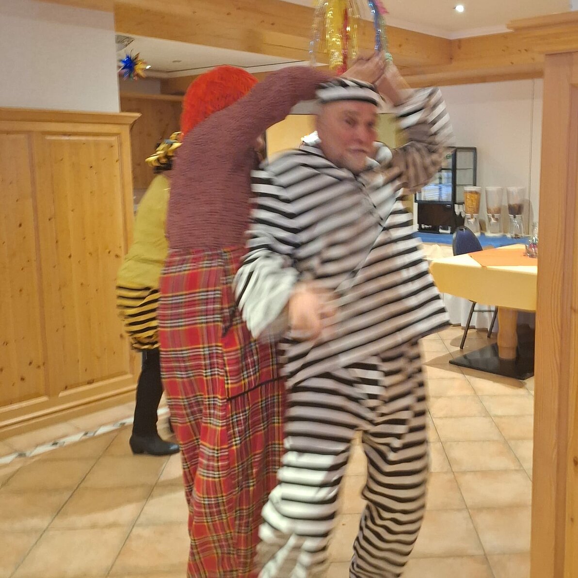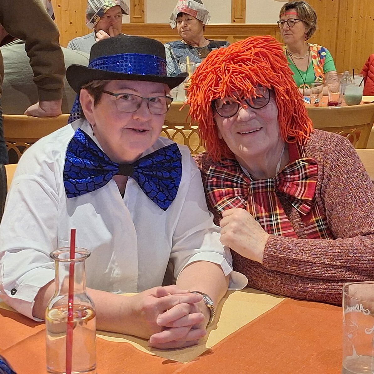 Gut ausgestattet brachten Meister Maria und Lehrling Poldi kreative handgefertigte, kreativ gestaltete Hüte mit – und so entstand schnell eine bunte, fantasievolle Faschingsrunde, bei der viel gelacht und getanzt wurde.
