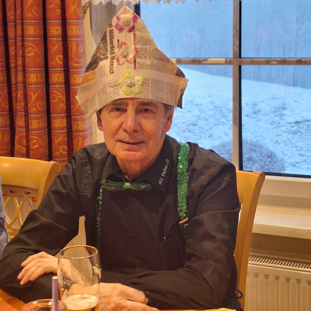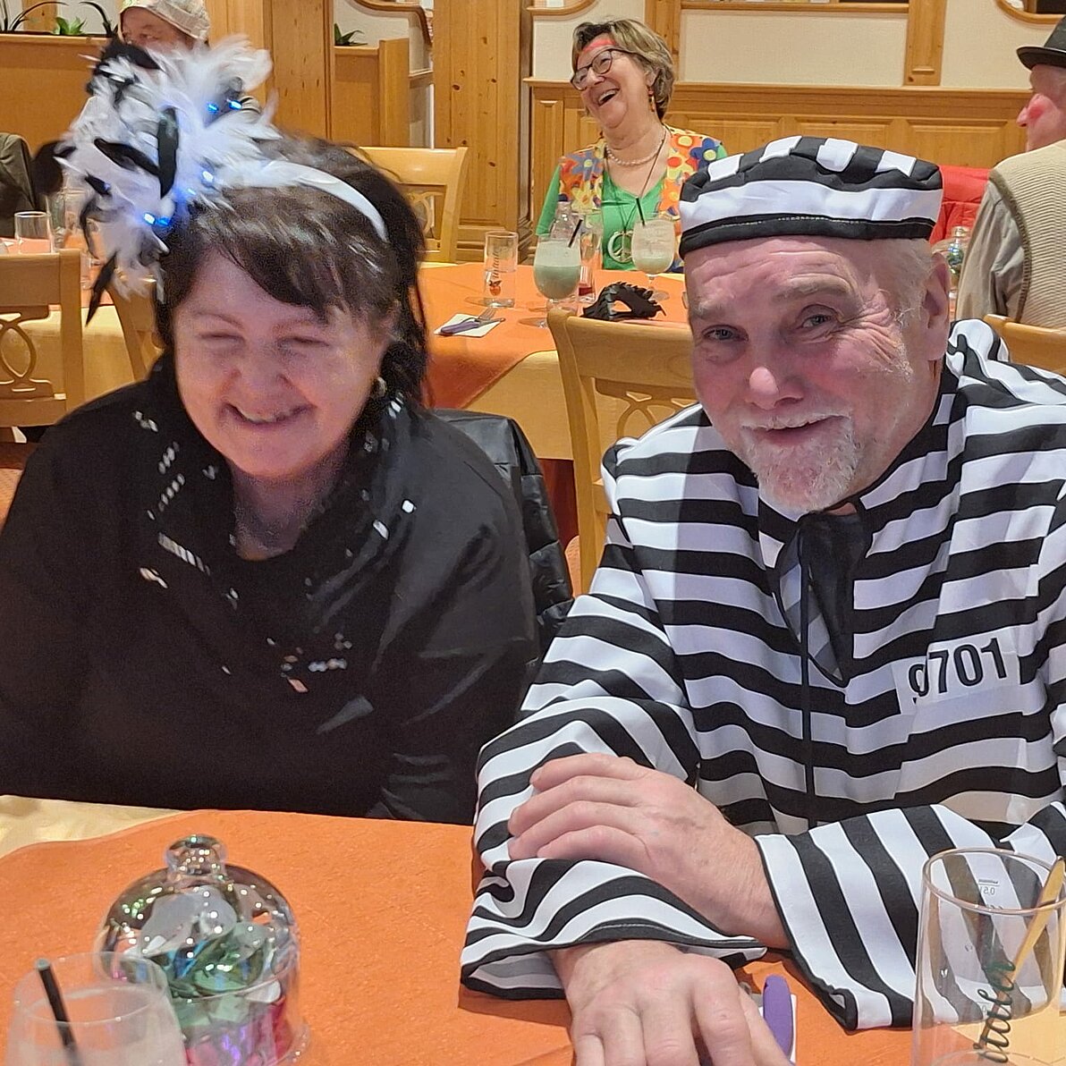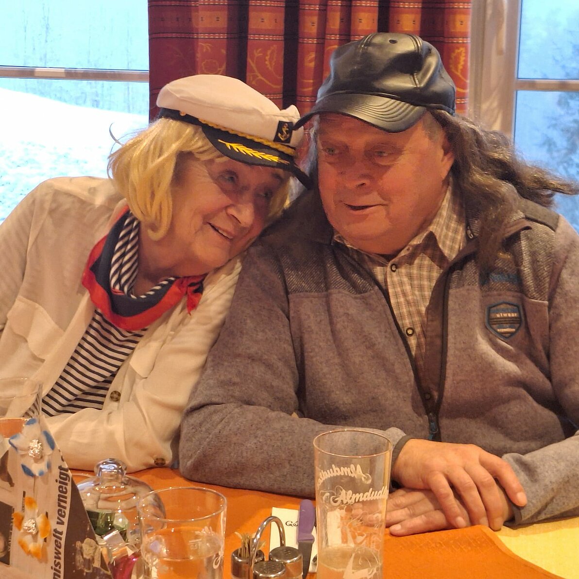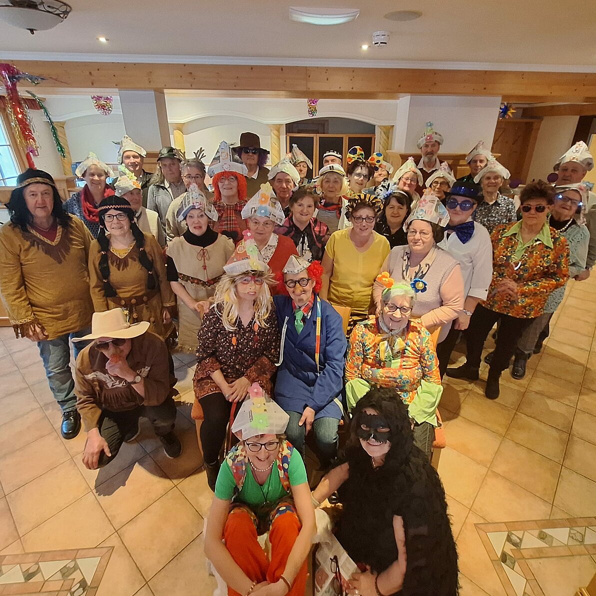 Gut ausgestattet brachten Meister Maria und Lehrling Poldi kreative handgefertigte, kreativ gestaltete Hüte mit – und so entstand schnell eine bunte, fantasievolle Faschingsrunde, bei der viel gelacht und getanzt wurde.