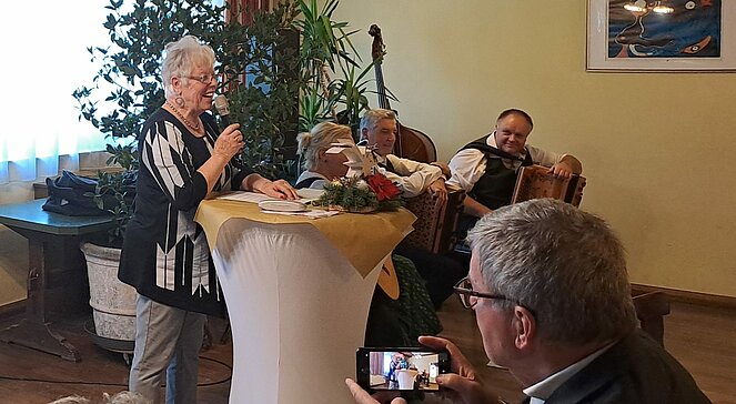 Besinnlich und humorvoll gestalteten wir heuer unsere Weihnachtsfeier. Bei ihrer Ansprache konnte unsere Vorsitzende, Berti Ofner, die Bürgermeister unserer 2 Gemeinden Ligist und Krottendorf, sowie den Kassier in Vertretung des Bgm Söding St.Johann begrüßen. Beim Jahresrückblick bekamen die Gäste einen Überblick über unsere abwechslungsreichen Aktivitäten des abgelaufenen Jahres. Umrahmt wurde diese Feier mit besinnlichen und heiteren Geschichten und Gedichten, vorgetragen von Berti Ofner, Ingrid Rothbart und Resi Scherr. Mit der Musik der "Feinspitz Musi" wurde diese Feier auch musikalisch aufgewertet..
