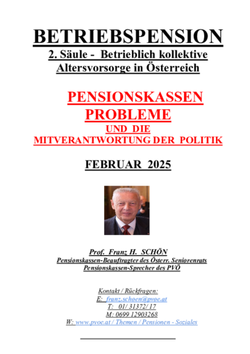 Prof. Franz H. Schön informiert und berät alle Pensionskassen-Leistungsberechtigte - die Mitglieder des Pensionistenverbands sind - völlig kostenlos.
