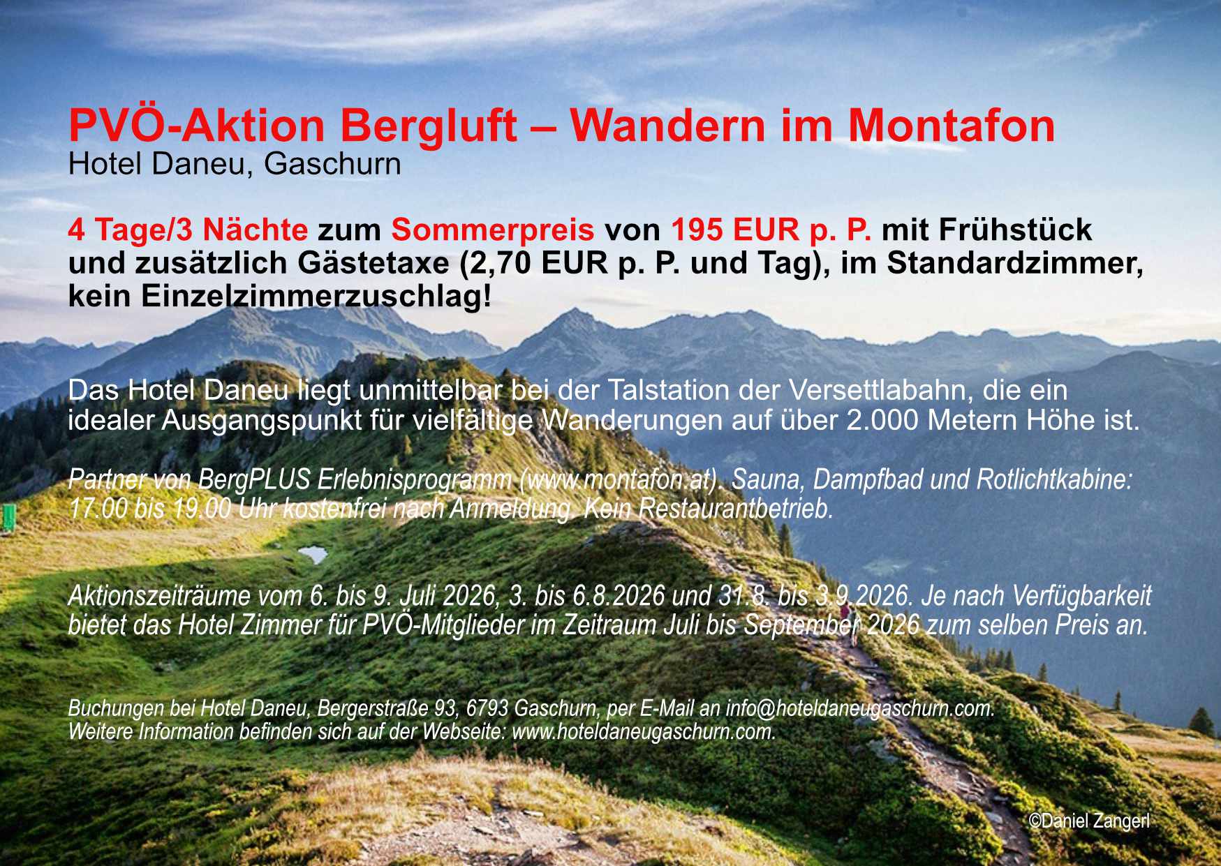 Buchungen bei Hotel Daneu Gaschurn, Bergerstraße 93, 6793 Gaschurn, per E-Mail an info@hoteldaneugaschurn.com.