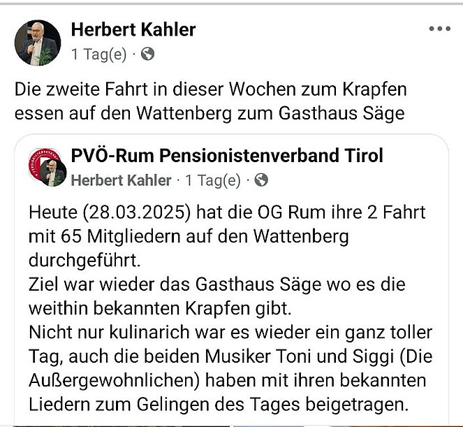 Ausflug der PVÖ-OG RUM auf den Wattenberg zum KRAPFENESSEN
