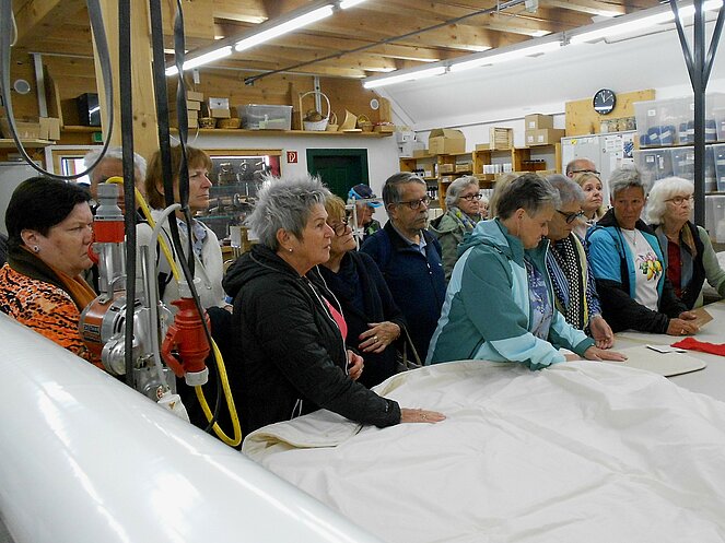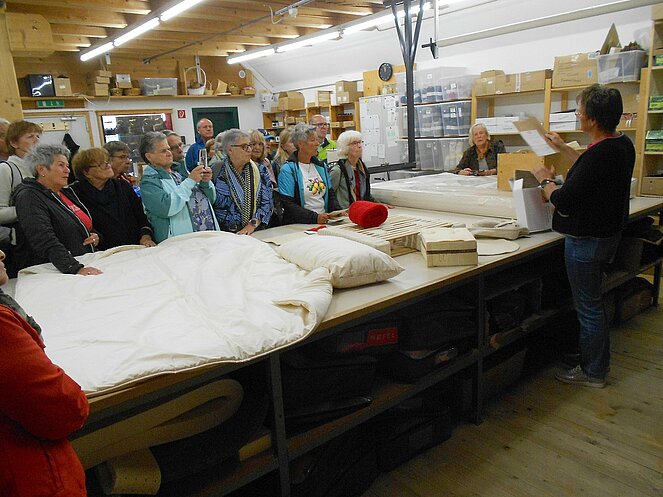 Abfahrt von Völs über den Brenner ins Pustertal mit Kaffeepause in der Raststation Lanz, Weiterfahrt bei einsetzenden Regen nach Sillian, von dort in nördl. Richtung ins Villgratental, das an der Einmündung des Villgratenbaches in die Drau bei Heinfels beginnt. Nach ca. 6 Km erreichten wir Außervillgraten und nach weiteren ca. 7 km Innervillgraten, dort Besichtigung des Schafwollverarbeitungsbetiebes „Villgrater Natur“ der Fam. Schett. In der gut einstündigen Führung wurde uns ausführlich über die Verarbeitung von der Schur der Schafe bis zur Fertigung der Produkte vorgetragen.