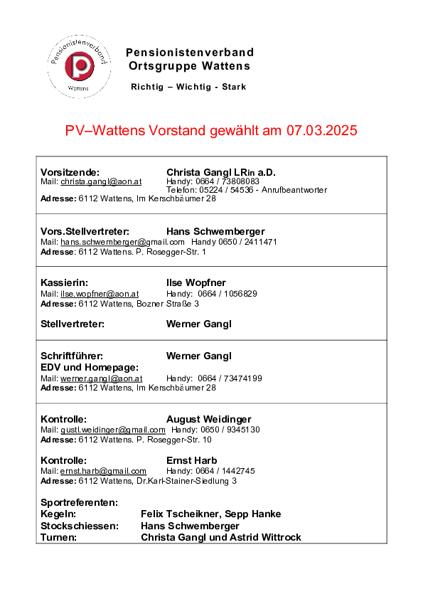 Die Obfrau LR a.D. Christa Gangl, die bereits den Verein seit 17 Jahren führt, wurde von den Mitgliedern einstimmig wiedergewählt. Ebenso einstimmig wurde der neue Vorstand gewählt.