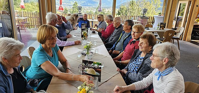 Bevor die kalte Jahreszeit hereinbricht, machen die Leisacher PensionistInnen noch gerne eine gemeinsame Herbstwanderung. Diesmal ging es am 8. Oktober ganz ohne Fahrzeug von der Alten Straße aus über den Naturlehrpfad Richtung Schlossberg. Die Wanderung durch den Mischwald ist im Herbstlicht bei beginnender Verfärbung der Buchen und Ahornbäume besonders lohnend. Unterwegs bot sich an mehreren Stellen Gelegenheit, Erinnerungen und allerlei Wissenswertes über diesen Bereich des Lienzer Talbodens auszutauschen. Das Ziel war der Gribelehof, wo wir uns auf der neu errichteten, großen Glasveranda bei herrlichem Panoramablick mit Kaffee und Kuchen bewirten ließen.