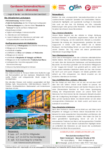 Reisepreis: € 549,- p.P. im DZ für Mitglieder € 649,- p.P. im DZ für Nichtmitglieder € 138,- EZ-Zuschlag für 3 Nächte