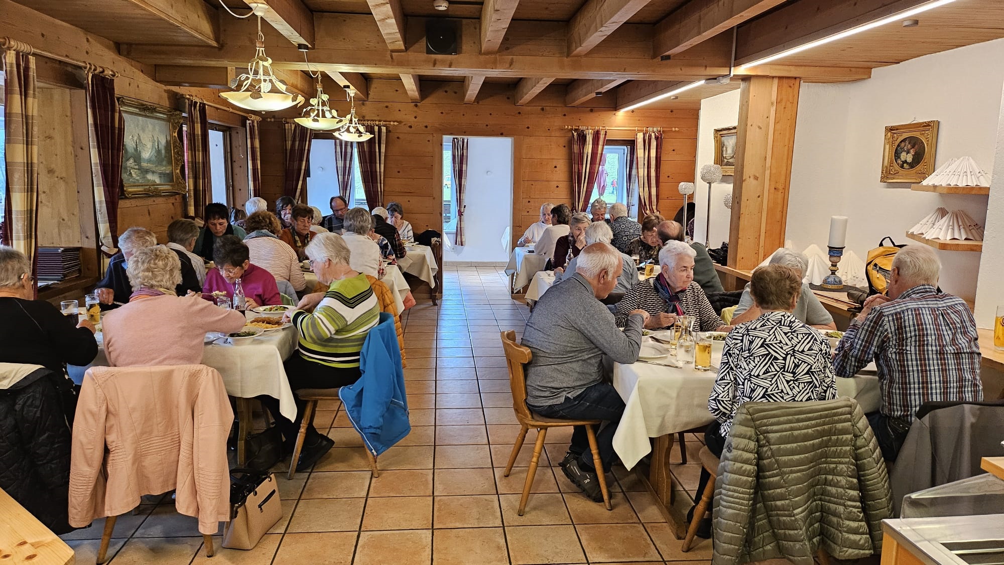 Von hier aus ging es in die Höhe zum Alpengasthof „Hörnlepass“. Dort angekommen erwartete die PVÖ-Ausflügler ein herrliches Mittagessen mit ausgezeichneten Kässpätzle und Salat, sowie das obligatorische „Verdauerle“.