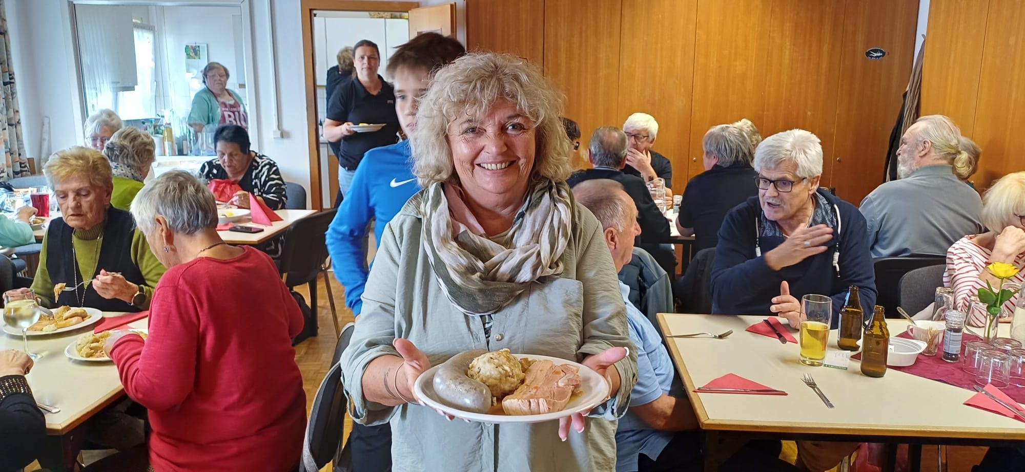 Aufgetischt wurden allerlei deftige Spezialitäten, wie es sich für eine echte Schlachtpartie gehört: Blut-und Leberwurst, Beinschinken, Kesselfleisch, dazu Sauerkraut und Knödel – alles frisch zubereitet und mit viel Liebe serviert. Bei bester Stimmung wurde gegessen, gelacht und geplaudert. Die Gäste genossen die Gelegenheit, in gemütlicher Atmosphäre zusammenzusitzen und alte Bekannte wiederzutreffen.
