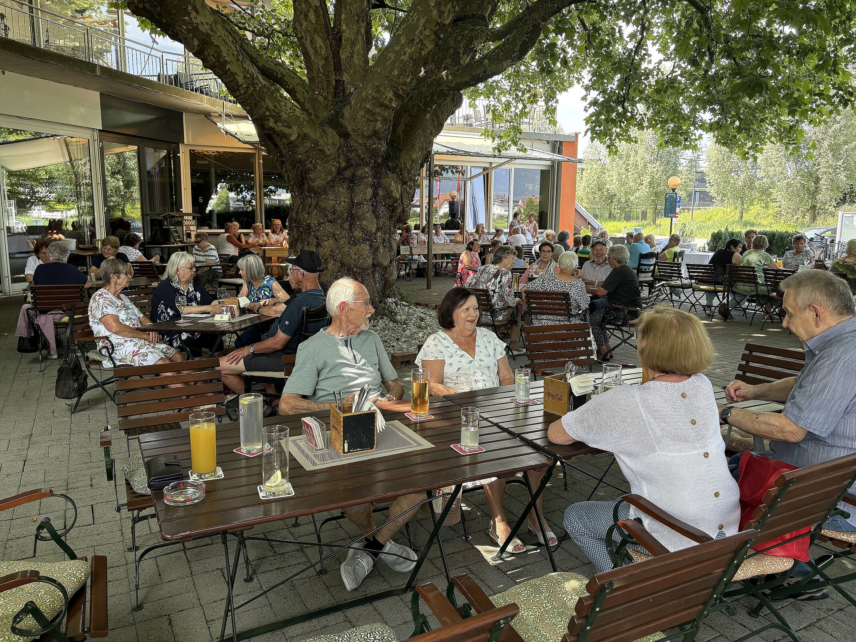 Die zahlreich erschienen Mitglieder konnten im Schatten der schönen Bäumen im Gastgarten den Tag bei Musik von Didi und grillen vom Martin Stöger und sein Team geniessen.
