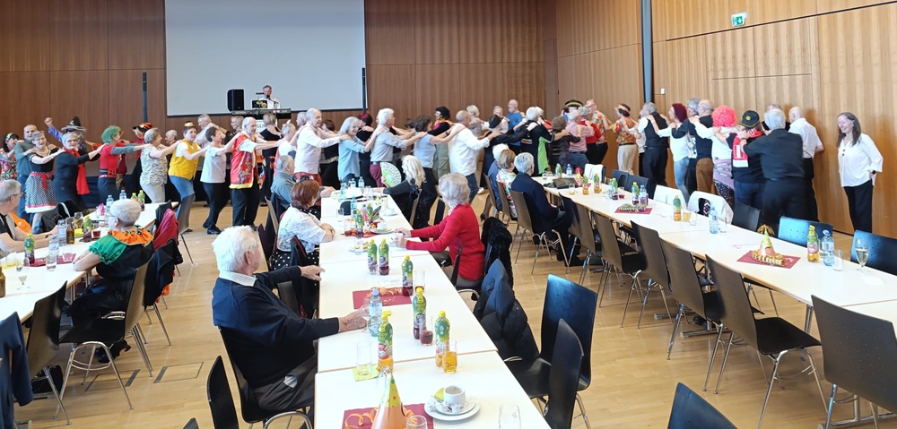 Auf einen vollen Höchster Pfarrsaal freute sich die Obfrau des Pensionistenverbandes (PVÖ) Rheindelta, Theresia Schneider, beim PVÖ-Faschingstanz. Zahlreiche Mäschgerle folgten der Einladung zu diesem ausgelassenen und lustigen Nachmittag. Musikalisch sorgte Alleinunterhalter Ernst nicht nur für schwungvolle Klänge, sondern auch für Tanzvorgaben. So dürfte natürlich die Polonäse nicht fehlen, die sich besonders die Obfrau wünschte. Weil alle mittaten und viel Spaß hatten, gab es als kleine Überraschung für alle einen Faschingskrapfen, gesponsort vom Rheindelta PVÖ-Team. Nach dieser Stärkung konnte dann weiter gefeiert werden. Wiederum perfekt funktionierte der Service durch das PVÖ-Team, die sich um das leibliche Wohl der PVÖ-Mitglieder kümmerten.