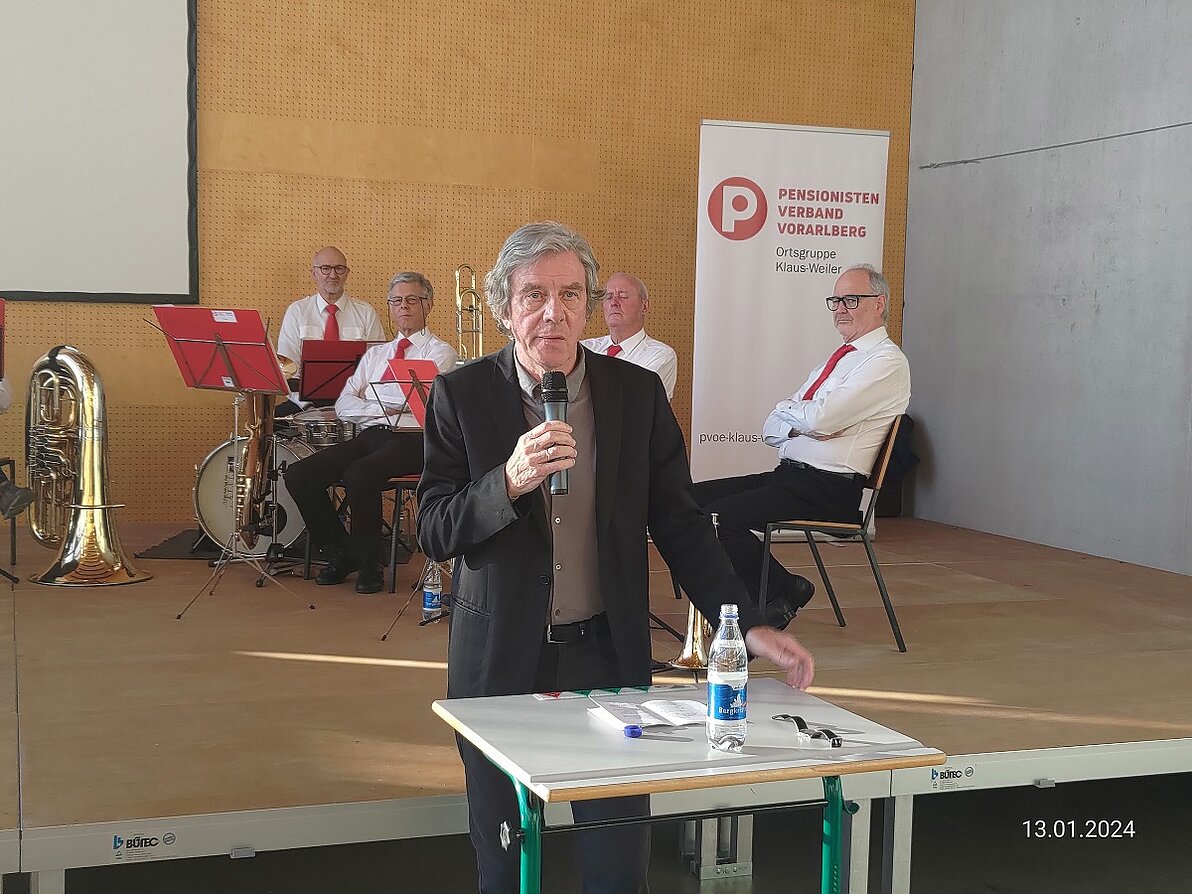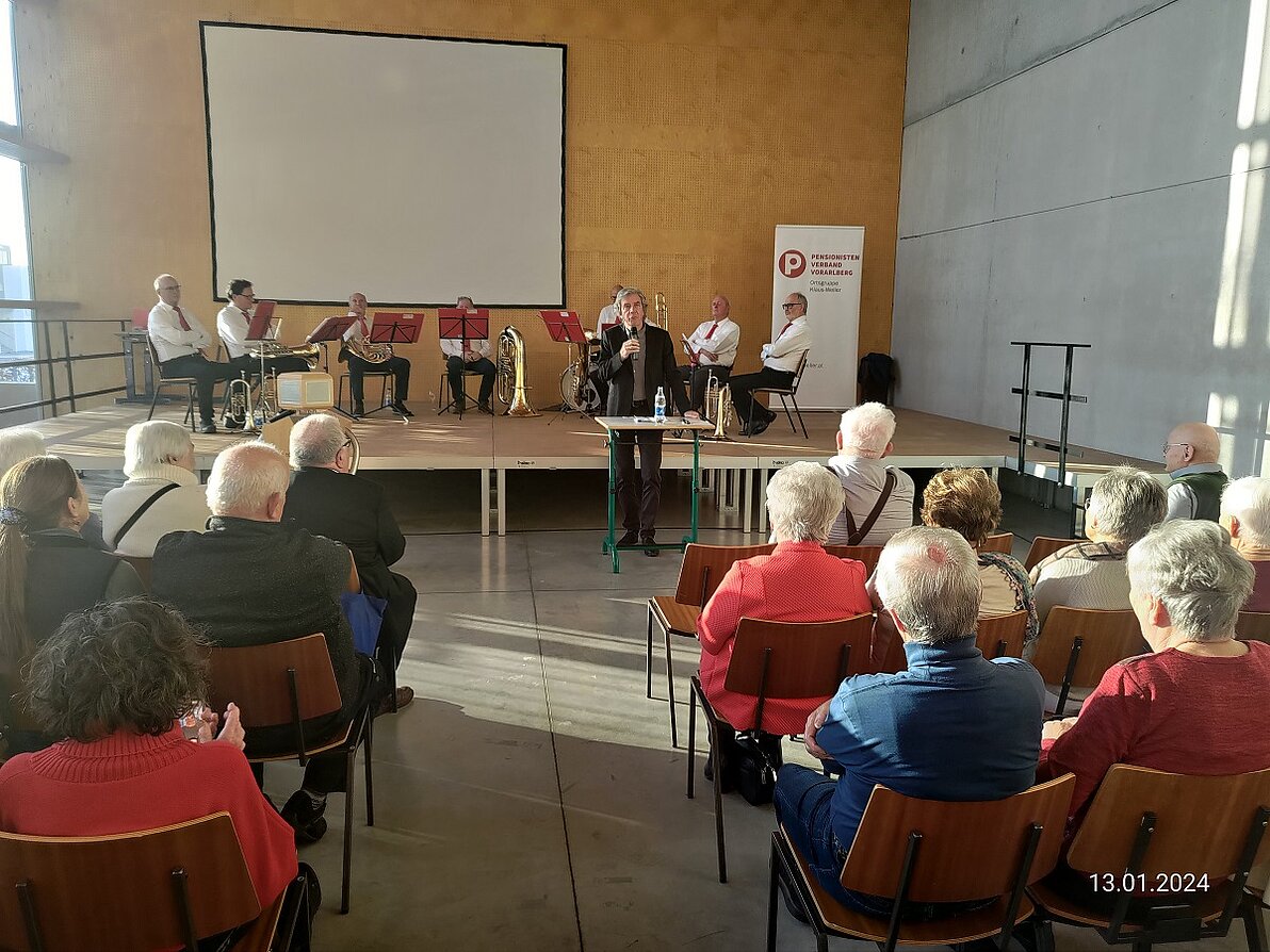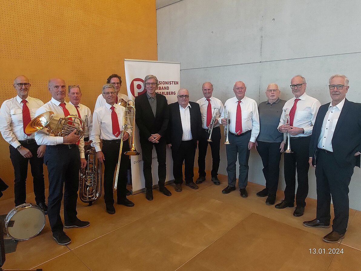 PVÖ-Obmann und Organisator Elmar Mayer konnte neben den Referenten Prim. Dr. Albert Lingg, Bgm. Dietmar Summer, LP Manfred Lackner und GF Hubert Lötsch, mehrere Vorsitzende der benachbarter PVÖ-Ortsverbände begrüßen. Feierlich umrahmt wurde der Empfang vom hervorragenden Bläserensemble des PVÖ Vorarlberg unter der bewährten Führung von Kapellmeister Manfred Allmayer.