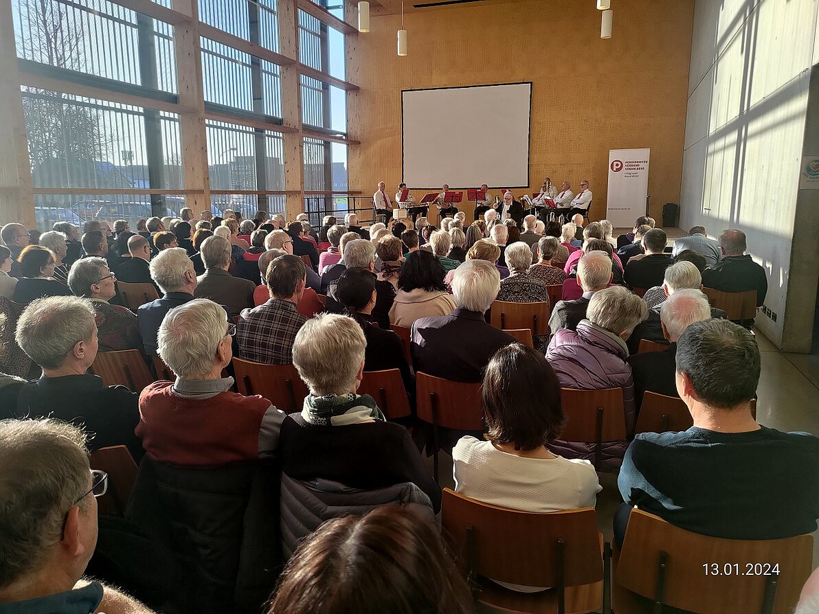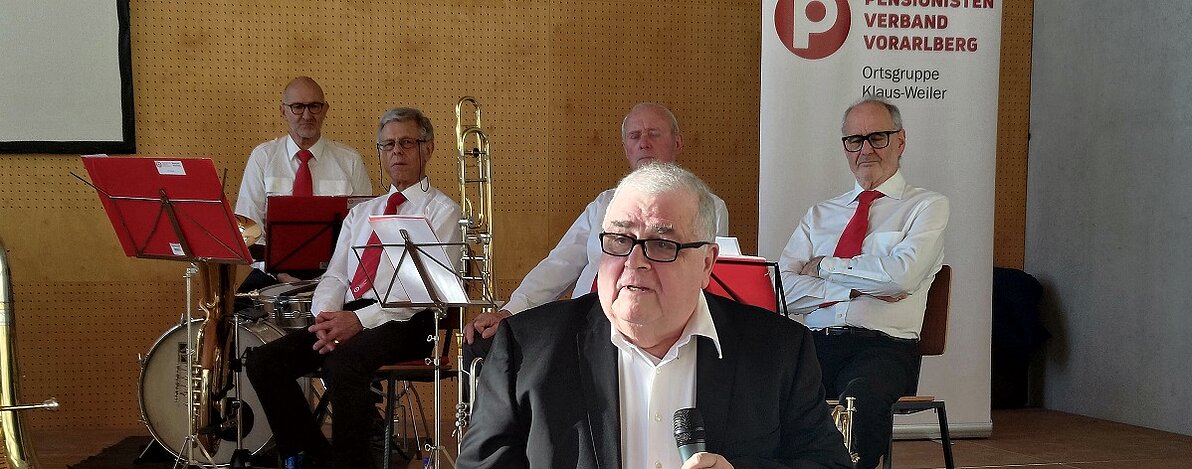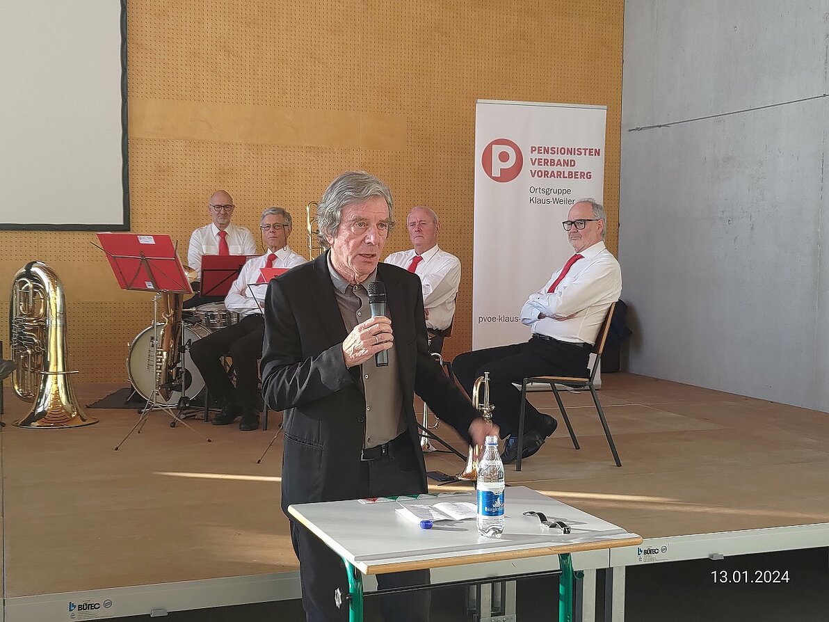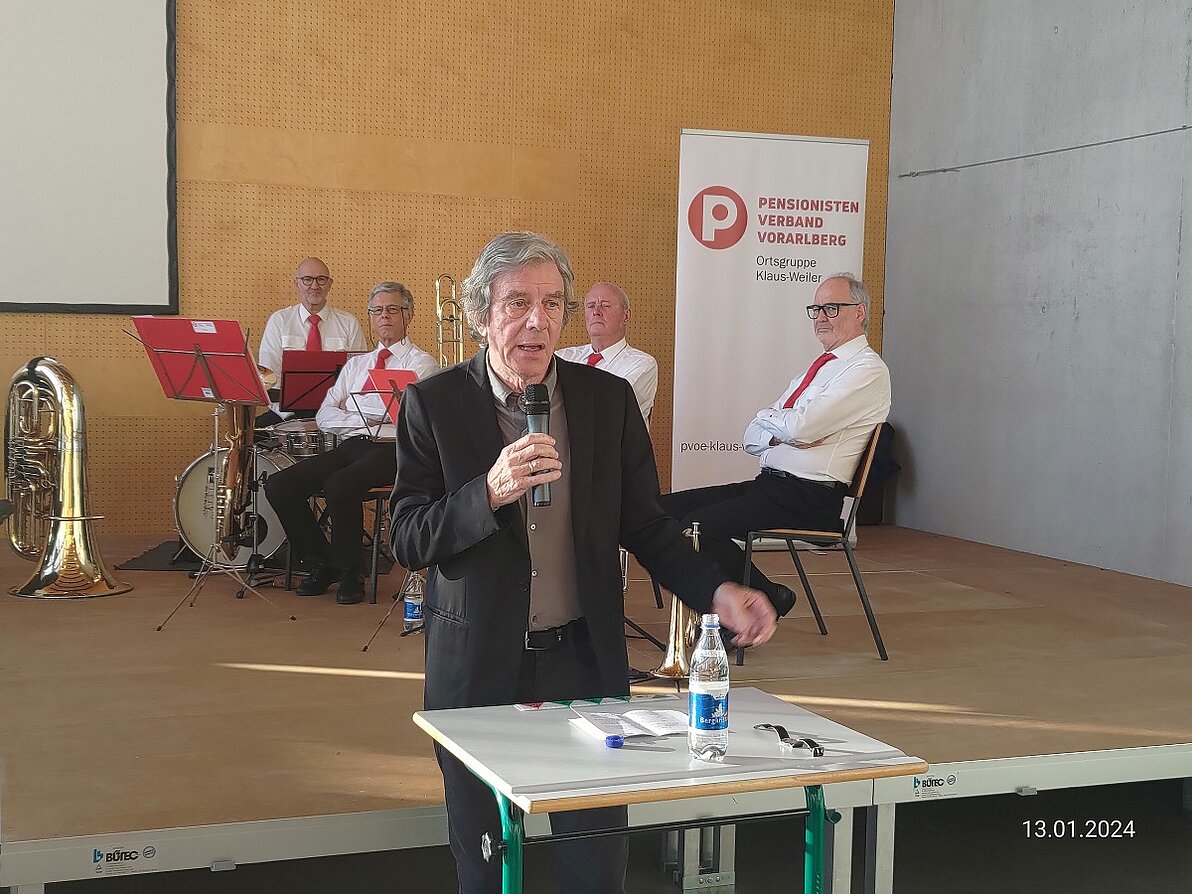 PVÖ-Obmann und Organisator Elmar Mayer konnte neben den Referenten Prim. Dr. Albert Lingg, Bgm. Dietmar Summer, LP Manfred Lackner und GF Hubert Lötsch, mehrere Vorsitzende der benachbarter PVÖ-Ortsverbände begrüßen. Feierlich umrahmt wurde der Empfang vom hervorragenden Bläserensemble des PVÖ Vorarlberg unter der bewährten Führung von Kapellmeister Manfred Allmayer.