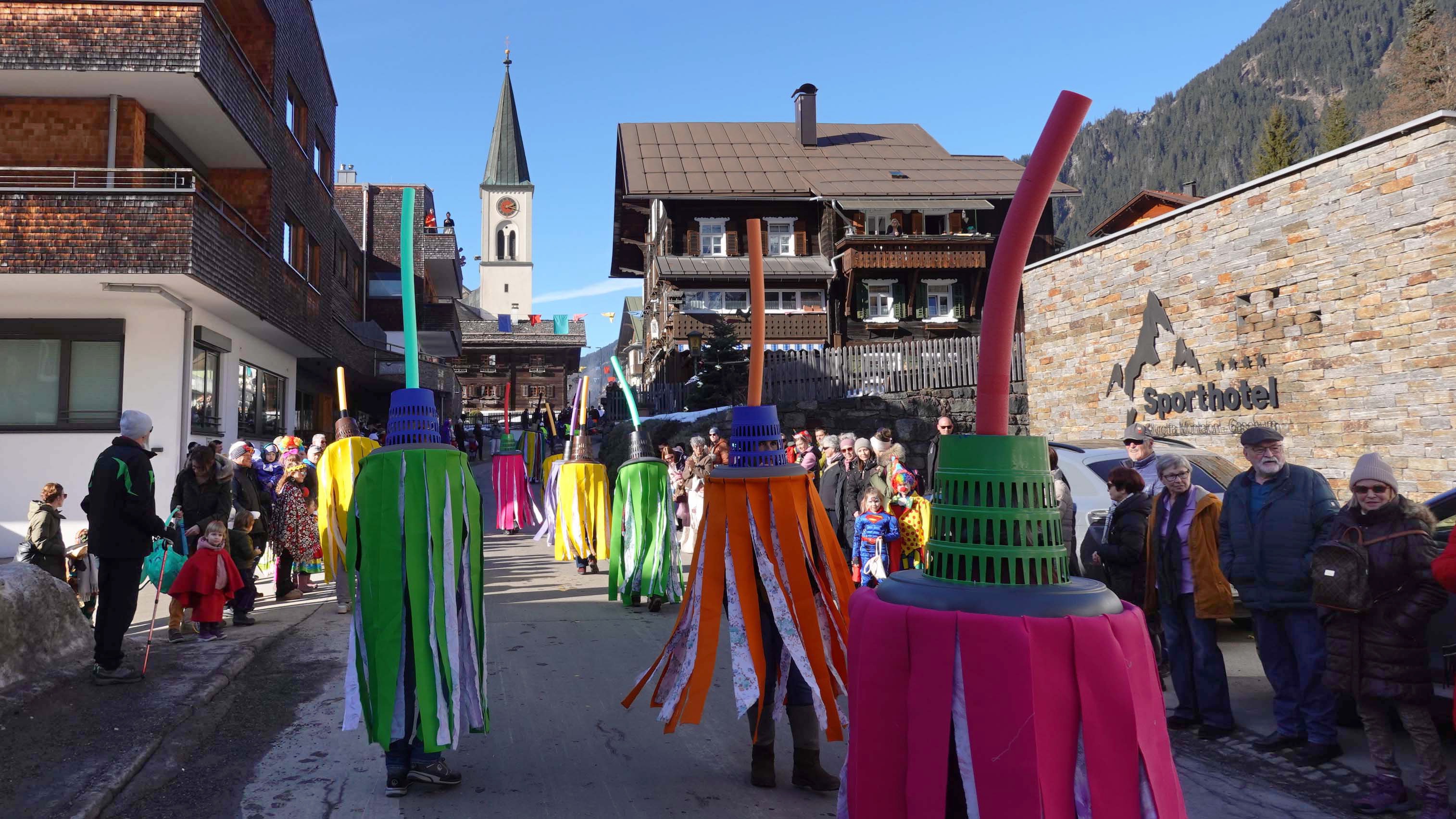 Im Montafon sagt man: „Ma got anand“. Und somit haben 14 Mitglieder des Pensionistenverbandes (PVÖ) Partenen am Faschingsumzug in Nachbardorf Gaschurn teilgenommen. Bei einem wunderschönen Wintertag haben 14 Teilnehmer die vergangenes Jahr beim Faschings-Umzug in Partenen verwendeten Utensilien der PV-Putztruppe namens „Wischmopp“ wieder angezogen und damit den heuer durchführten Faschingsumzug in Gaschurn bereichert. Der dortige Kommentator hat diese Initiative des PVÖ Partenen mit viel Lob bedacht. Am Gaschurner Kirchplatz hatte diese bunte Show ein Ende und unsere Teilnehmer konnten nach Erhalt einer guten Jause die Heimfahrt nach Partenen antreten.