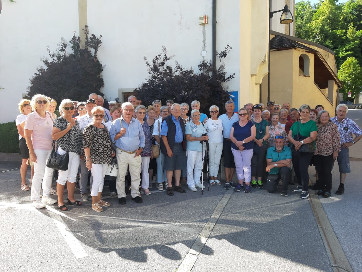 Die Mitglieder des Pensionistenverbandes (PVÖ) von Gallenkirch fuhren schon zeitig in der Früh im vollbesetzten Bus Richtung Innsbruck. In der Imster Au machten wir Frühstückspause mit Schinkenbrötle, die wir vorher in der Bäckerei Lang in St. Anton abholten. Das nächste Ziel war der Bahnhof Innsbruck, wo wir die Mittenwaldbahn bestiegen. Nach einer Stunde Fahrtzeit durch eine imposante Landschaft mit herrlichem Blick ins Inntal, erreichten wir Mittenwald, das eigentliche Ziel des Tages. Im Postkeller wurden wir schon zum Mittagessen erwartet. Danach konnte man noch den wunderschönen Ortskern erkunden, bevor es über das Mieminger Plateau Richtung Heimat ging. Im Gasthaus Hirschen in Imst legten wir noch eine Kaffeepause ein. Um 19.00 Uhr erreichten wir wieder wohlbehalten unsere Heimatgemeinde St. Gallenkirch. Es war ein wunderschöner, wenn auch heißer Tag. Herzlichen Dank an unseren Chauffeur Brani von der Firma Haueis, der uns – so wie immer – sicher und gut durch den Tag brachte.