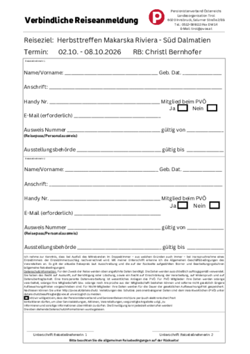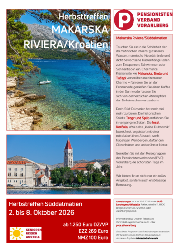 2. bis 8. Oktober 2026, Herbsttreffen Makarska Riviera/Kroatien