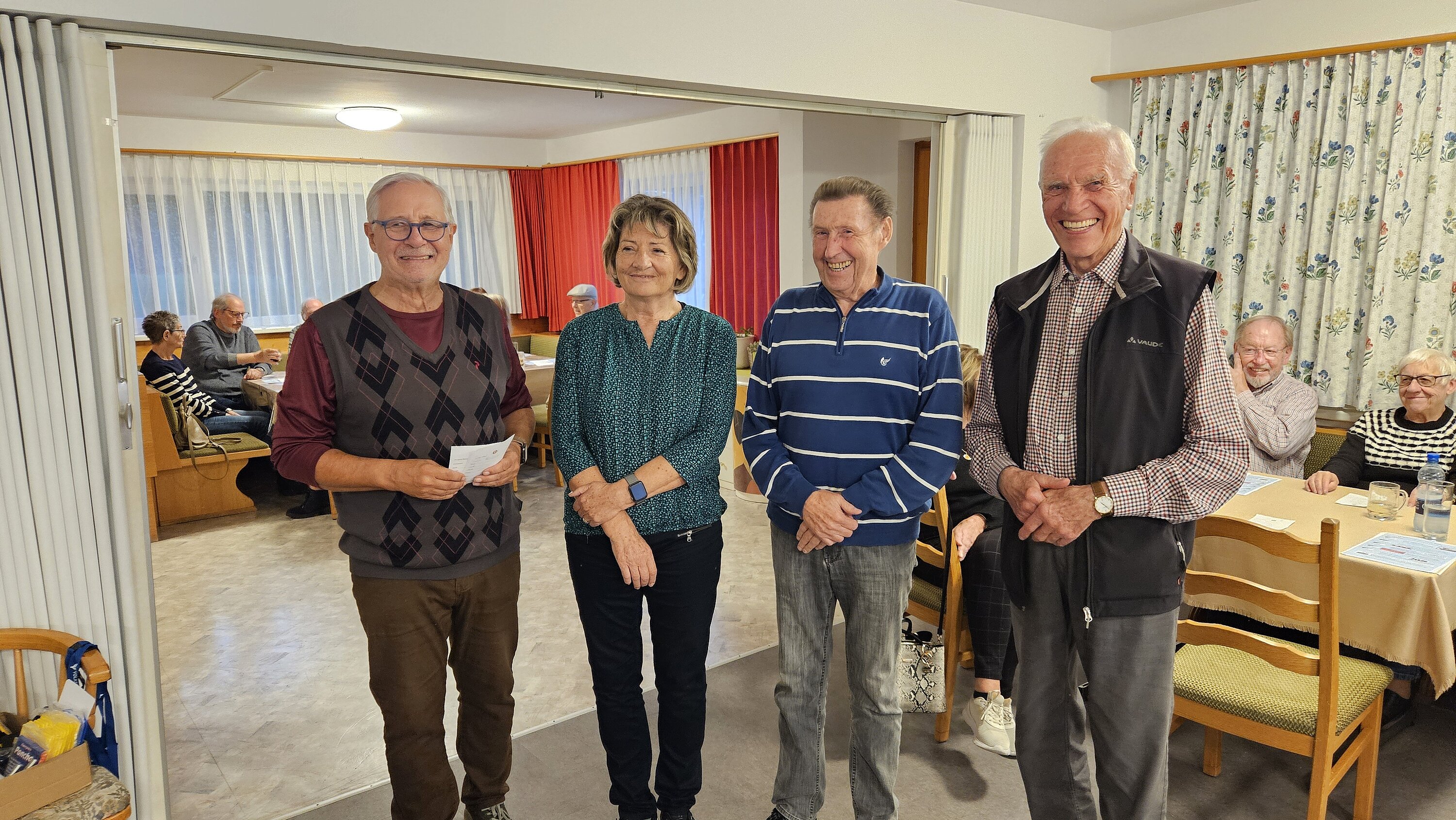Nach dem gemütlichen Heurigennachmittag in Bickels Moststuben trafen sich Freunde und Mitglieder des Pensionistenverbandes (PVÖ) Klaus-Weiler zum Preisjassen. In den bis auf den letzten Platz gefüllten Räumlichkeiten der Seniorenstube im Haus Simons in Klaus schafften es drei JasserInnen ganz nahe an die Stichzahl. Walter Egger schaffte mit 620 Zählern sogar eine Punktlandung. Alle drei Gewinner verzichteten zugunsten der folgenden Jasser auf den Hauptpreis, immerhin ein luxuriöses Handy von Samsung. Selbst die Gewinnerin des Trostpreises - ein Sack Kartoffeln - Helga Fink versprach, mit dem Preis bei einem der nächsten Zusammenkünfte einen feinen Salat zu präsentieren. PVÖ-Schriftführerin Waltraud Mayer lud nach einer köstlichen Weißwurstjause zu einer Ausfahrt am 28.November zum Weihnachtmarkt nach Konstanz und am 17. Dezember zur Weihnachtsfeier in den Pfarrsaal in Weiler ein.