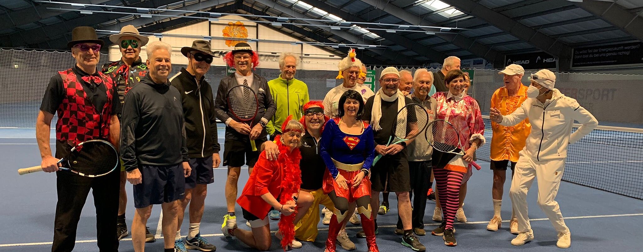 Kein Halten kennen die Tenniscracks des Pensionistenverbandes (PVÖ) Vorarlberg, die sich wöchentlich im Tennissportcenter Götzis treffen, im Fasching. Während auch der Heilige Nikolaus und zwischen Weihnachten und Neujahr gespielt und gefeiert wurde, war klar, dass auch die Faschingszeit am Tennisplatz nicht zu kurz kommen darf. Zur Freude von PVÖ-Tennischefin Alexandra Helbok verkleideten sich die rund 20 Teilnehmer vergangenen Dienstag dekorativ und humorvoll. Dennoch ließen sich die Tennisspieler vom Match nicht abhalten und könnten wieder Höchstleistungen erzielen. Zum Schluss wurde auf einen schönen und lustigen Fasching angestoßen.