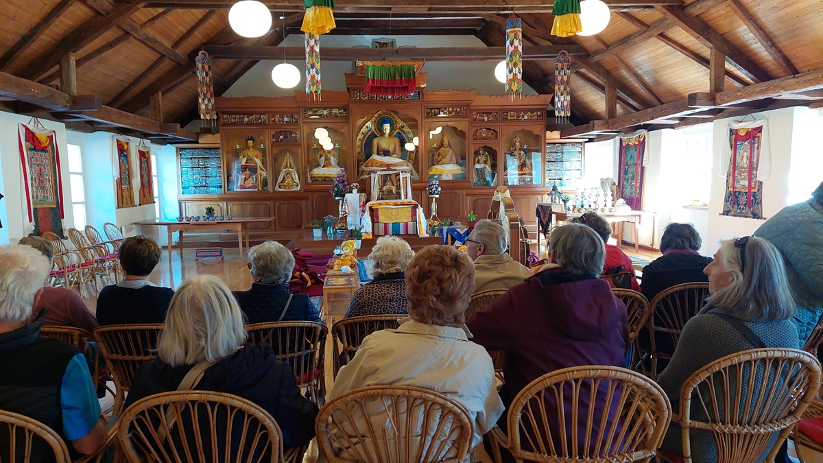 Helmut Gaßner – buddhistischer Mönch und administrativer Leiter des Letzehofes - begrüßte die fast 30köpfige Gruppe und begleitete sie in den Gebetsraum, der staunend und ehrfürchtig betreten wurde. Helmut Gaßner, beantwortete alle Fragen, egal ob es um Buddhismus, die Gründung des Klosters – welches auf sein Erbe zurückführt - oder das Leben und den Alltag in der Klostergemeinschaft, ging. Besonders großes Aufsehen und mediales Interesse erregte der Besuch des Dalai Lama. Kurz nach der Gründung (1982) des tibetischen Klosters Letzehof weihte er dort eine Stupa - ist eine symbolische Darstellung des Geistes eines Buddha – ein.
