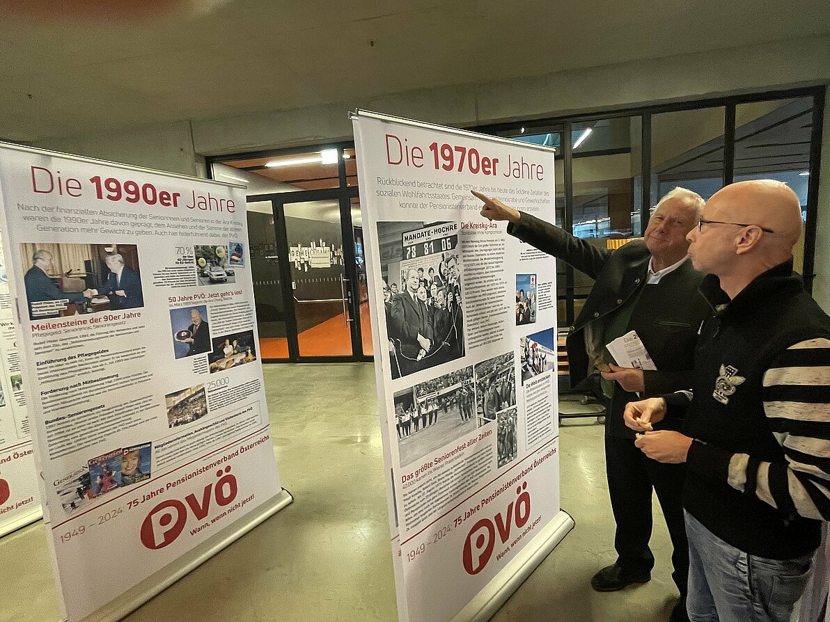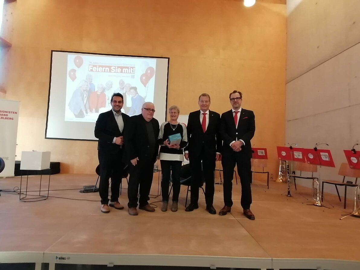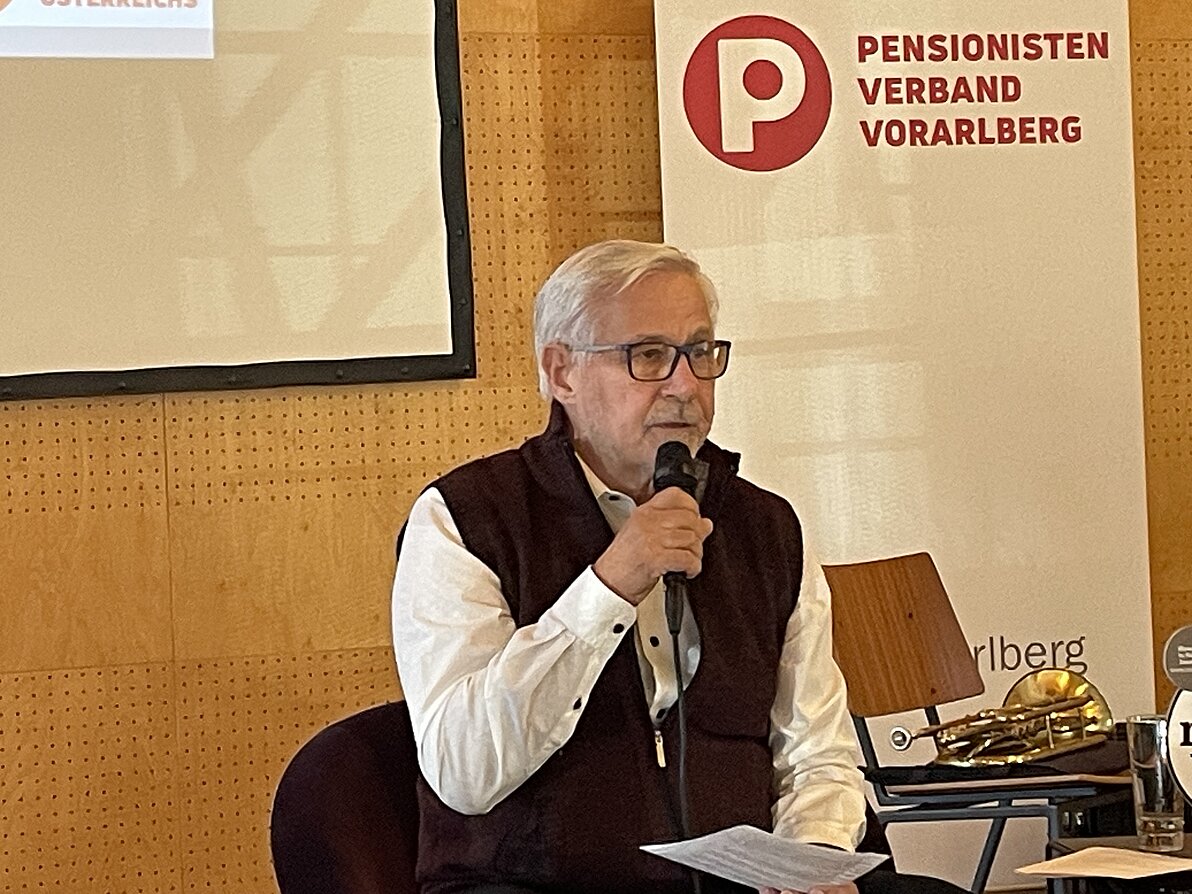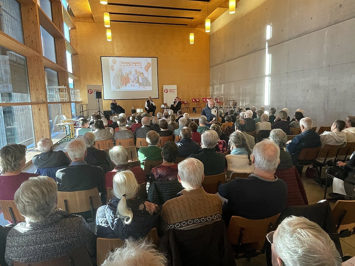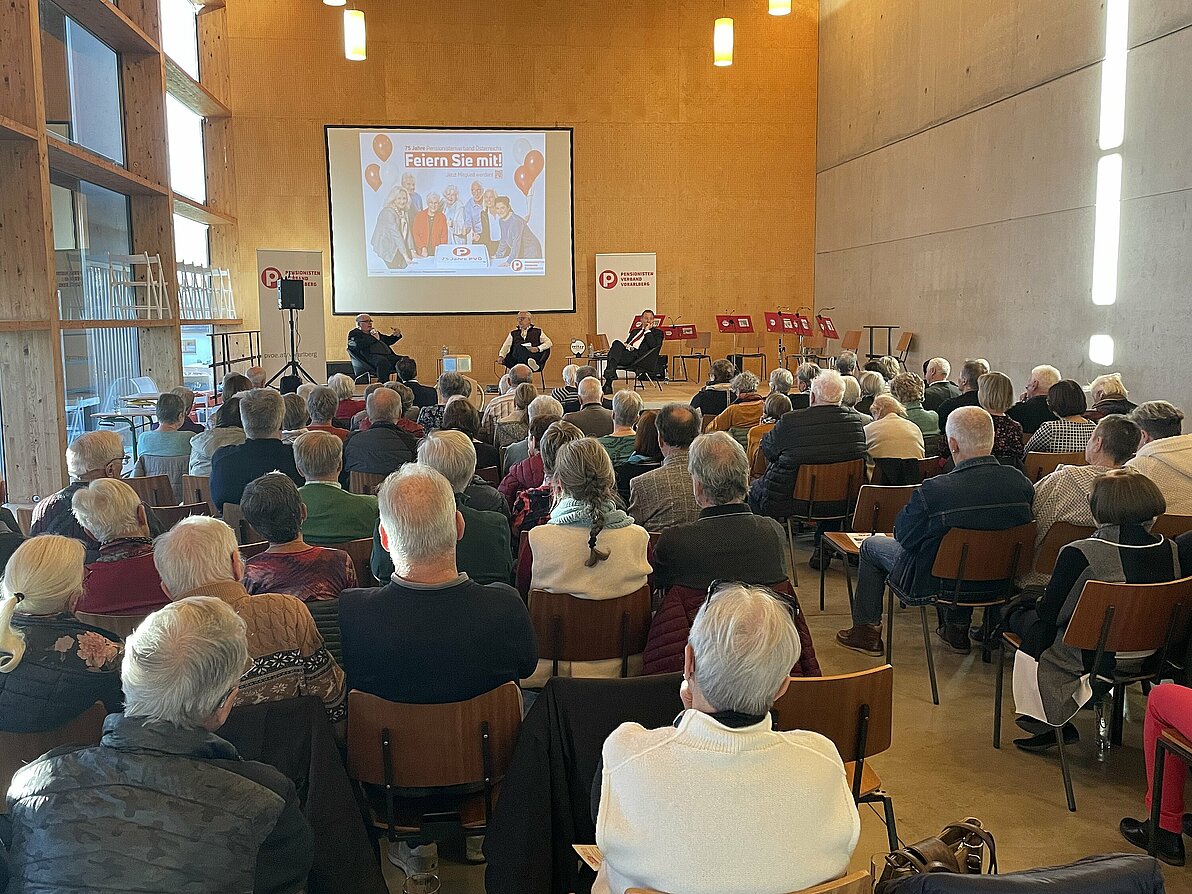 Im Foyer der Mittelschule Klaus stieg die Abschlussveranstaltung des Pensionistenverbandes (PVÖ) Vorarlberg zu 75 Jahren PVÖ. Als Stargast konnte Verbandspräsident Peter Kostelka, in Begleitung von Generalsekretär Christian Rösner, gewonnen werden. Das Podium diskutierte über die Errungenschaften der Interessensgemeinschaft der Generation 50plus und bot einen Ausblick auf die kommenden Herausforderungen. Das ASVG, Pflegegeld, Witwenpensionen, Ausgleichszulage, Wertsicherung der Pensionen, … wären ohne die jahrzehntelangen Bemühungen des PVÖ so nicht umgesetzt worden.