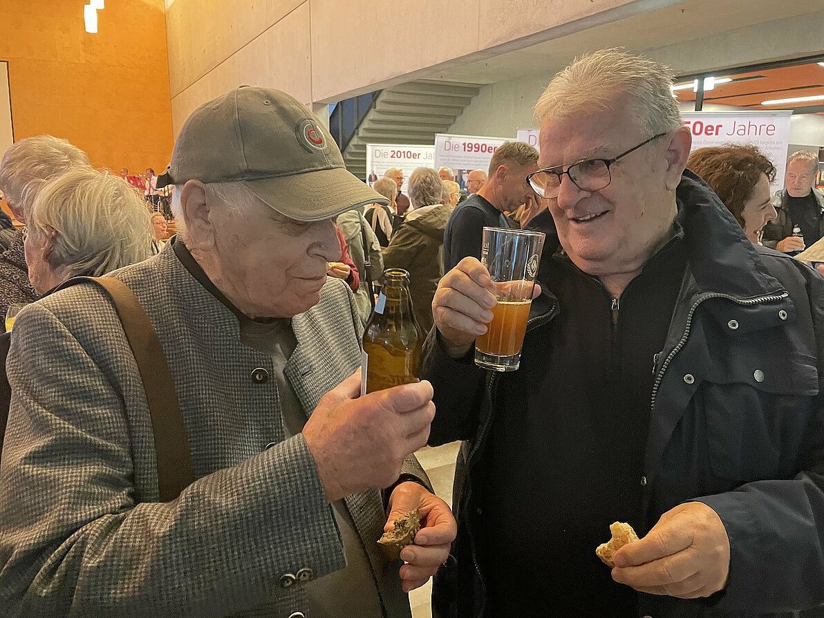 Das interessante Gespräch führte PVÖ-Ortsvorsitzender Elmar Mayer. Für die Antworten standen auch PVÖ-Landespräsident Manfred Lackner zur Verfügung. Untermalt wurde die Veranstaltung von der PVÖ-Tanzlmusig unter der Leitung von Manfred Allmayer. Nach dem Zeitzeugengespräch fand die Ausstellungseröffnung statt und auch die Gewinnerin des Neuroth-Gewinnspiels wurde mit Barbara Rauch ermittelt. Ein Dank gilt dem Team des PVÖ Klaus-Weiler für die perfekte Organisation.