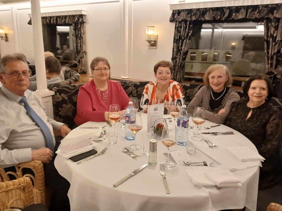 Nach dem Boarding ging es auf die festlich geschmückte MS Österreich. Hier wurde ein 3-Gänge-Menü des Sternekochs Heino Huber serviert. Der Abend wurde begleitet von der Zitterspielerin Anneliese Fessler. Als Ehrengäste konnte der PVÖ Hard den Bürgermeister Martin Staudinger und den PVÖ-Landessekretär Hubert Lötsch begrüßen.