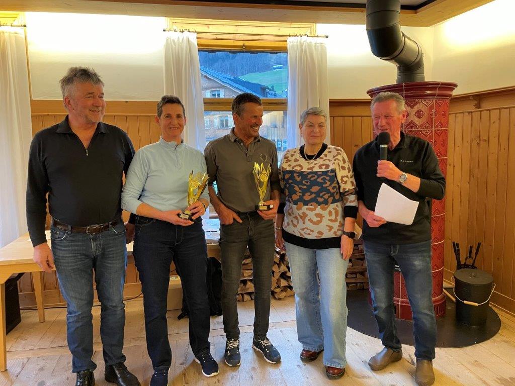Die Siegerehrung fand im Anschluss an die Läufe im Gasthaus Löwen in Au statt. Dort wurden auch die ältesten Teilnehmer Marlies Berkmann und Edwin Stampfer von den Offiziellen des PVÖ Vorarlberg geehrt. Besonders freute sich das Organisationsteam um Landessportreferentin Evi Woinesich, Wintersportreferentin Isolde Fink, Rennchef Wolfgang Geiger und Ortsobmann vom PVÖ Mittel-/Hinterwald, Traugott Muxel, über die erfolgreiche Durchführung. Für die musikalische Unterhaltung zur Preisverleihung konnte Ernst gewonnen werden.