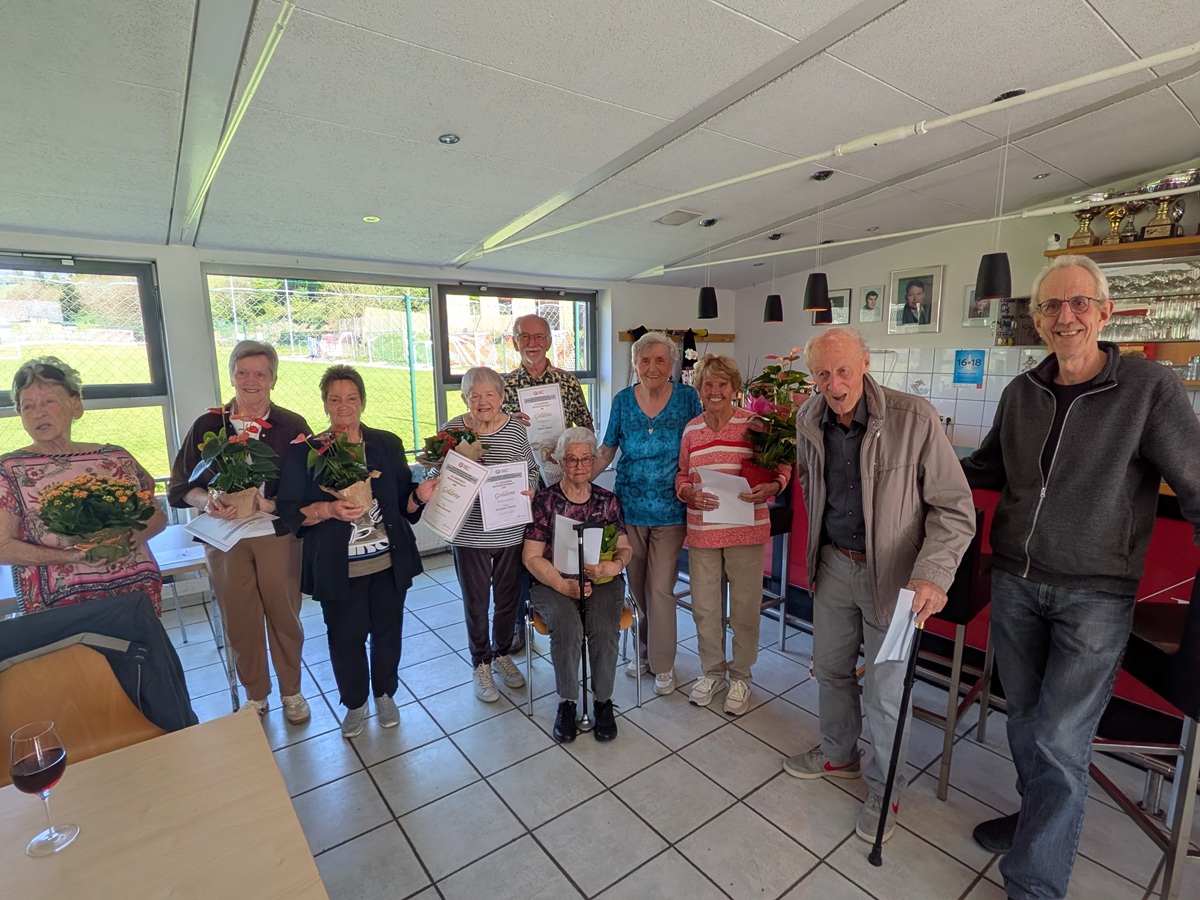 Bei den anschließenden Ehrungen wurden treue Mitglieder mit Urkunde, Ehrennadel und einem Geschenk von Brigitte Zangerl, Werner Nesensohn und Hubert Lötsch gewürdigt. Der Abschluss bildete ein Imbiss, der von Gastra-Küche zubereitet wurde.