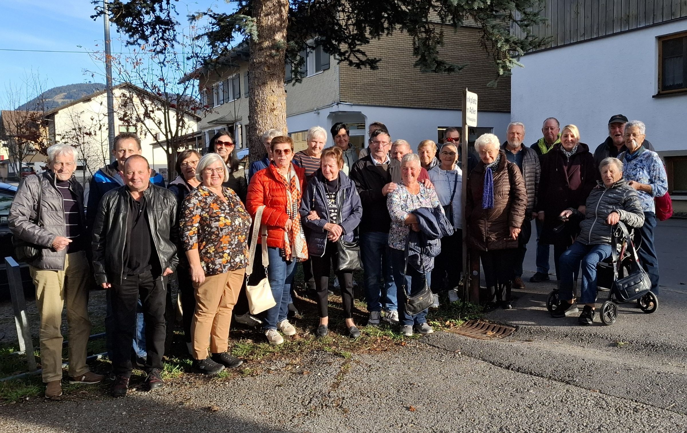 Herzlichst wurden wir im ,,Gasthaus Goldenen Adler“ von dem Personal empfangen. Käsknöpfle und Kartoffelsalat vom feinsten wurde uns in kürzester Zeit serviert und von den Pensionisten der Ortsgruppe mit Genuss gegessen. Dabei durfte danach ein gutes Schnäpsle nicht fehlen. Nach dem Essen, jeder wie er wollte, blieb uns noch Zeit für einen Spaziergang in der schönen Umgebung oder einem gemütlichen Hock in geselliger Runde.