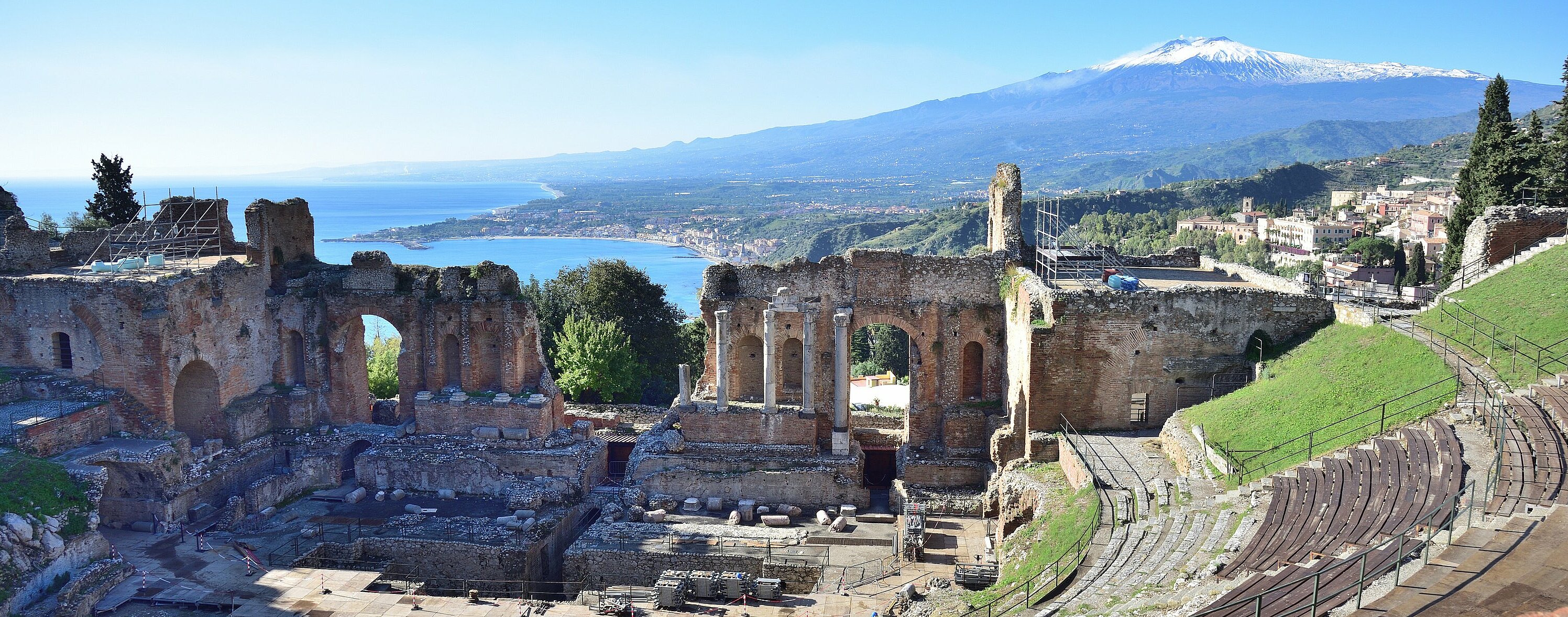 Am Fuße des Ätna befindet sich das bekannte Weingut Gambino, das Sie im Anschluss besuchen. Hier verkosten Sie typisch sizilianische Spezialitäten und natürlich den ausgezeichneten Wein. Zum Abschluss des Tages besichtigen Sie die mondäne Stadt Taormina an den Hängen des Monte Tauro. Der Blick vom griechisch-römischen Theater (Eintritt nicht inkludiert) Richtung Ätna zählt zu den bekanntesten Fotomotiven der Insel. Nächtigung im Raum Giardini Naxos.