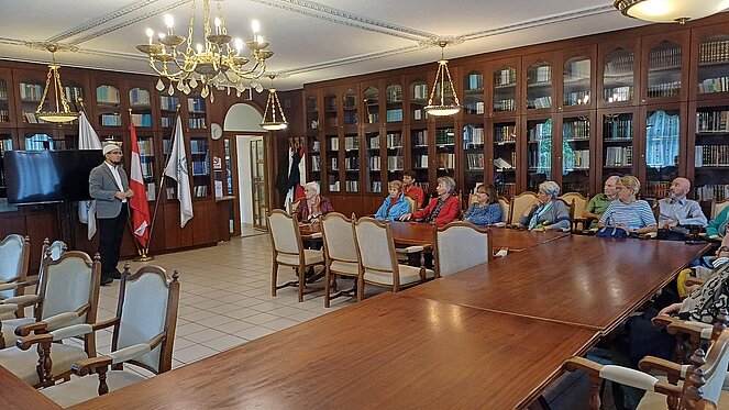 Der PVÖ Floridsdorf begab sich am 24.9.2024 auf die Spuren von Baumeister Lugners Vermächtnis und besuchte die Moschee am Bruckhaufen. Unter der gastfreundlichen Führung des Imams des Islamischen Zentrums waren sich die Teilnehmerinnen und Teilnehmer unseres Kulturspaziergangs einig: Eine besonders interessante Veranstaltung, denn Neues zu entdecken erweitert den Horizont.