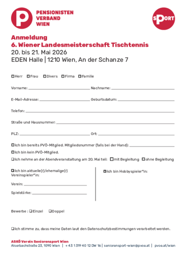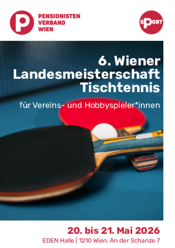 An zwei Spieltagen (20. und 21. Mai 2026) werden sich bereits zum sechsten Mal rund 70 tischtennisbegeisterte PVÖ-Mitglieder bei diesem sportlichen Ereignis vergleichen. Der Tischtennisklub des PVÖ-Floridsdorf wird sich in bewährter Weise wieder um die Turnierleitung kümmern. Wettkampfatmosphäre und Freude am Sport sowie Spaß beim geselligen Abend sind jedenfalls garantiert!