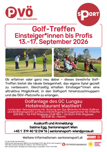 - Beginn: So, 13.9., 13 Uhr Golfanlage, (Einführung und Kursbeginn)