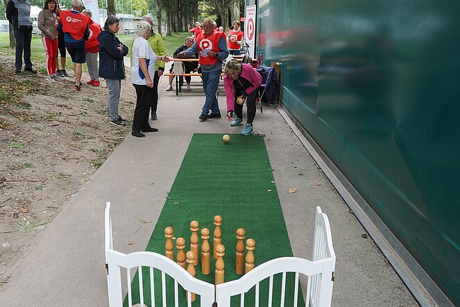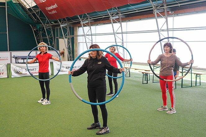 Das vielseitige Programm bot für alle etwas: von Krolf, Walking Football und Nordic Walking über Tischtennis, Paddeltennis und Kegeln bis hin zu Senior*innentanz, Modern Linedance und Hula Hoop. Viele Teilnehmende nutzten die Gelegenheit, gleich mehrere Stationen auszuprobieren. Wer mindestens fünf Stationen absolvierte, durfte sich zudem über einen Wertgutschein freuen – wahlweise in Höhe von 10 Euro für ein Bewegungsprogramm oder 5 Euro für den Erwerb einer Senior*innen-Ball-Karte. An den Informationsständen erhielten Interessierte darüber hinaus wertvolle Tipps zu Prävention, Gesundheitsförderung und weiteren Sportmöglichkeiten. So bot die Veranstaltung nicht nur die Chance, neue Bewegungsformen kennenzulernen, sondern auch hilfreiche Anregungen für mehr Aktivität im Alltag mitzunehmen.