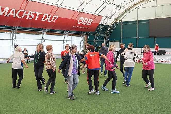 Am Dienstag, den 23. September 2025, fand im Sportcenter Donaucity der erste Wiener Senior*innen-Sporttag statt. Mehr als 200 bewegungsbegeisterte Besucherinnen und Besucher nutzten die Gelegenheit, neue Sportarten kennenzulernen, bestehende Fähigkeiten zu vertiefen und sich über Bewegungsangebote ab der Lebensmitte zu informieren.